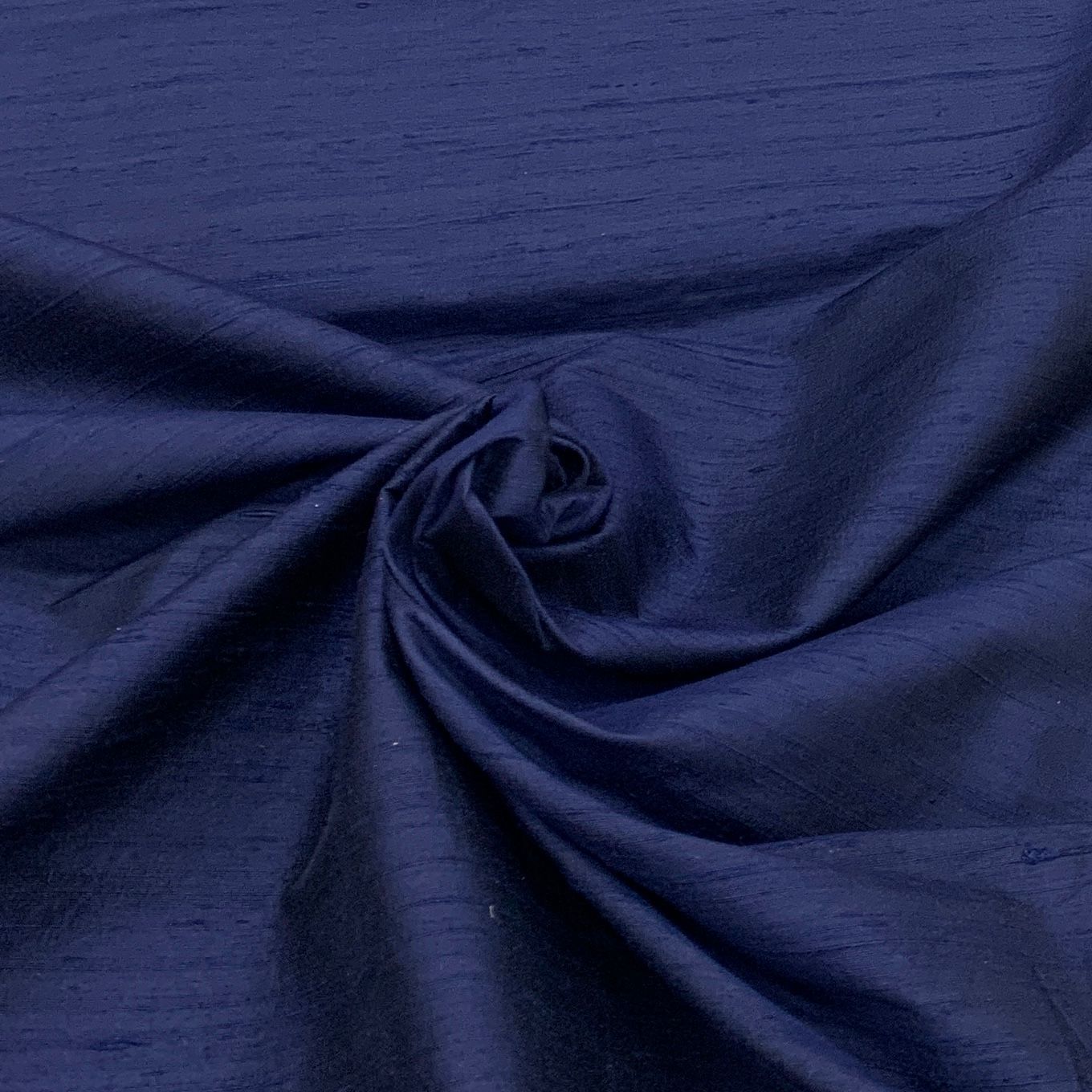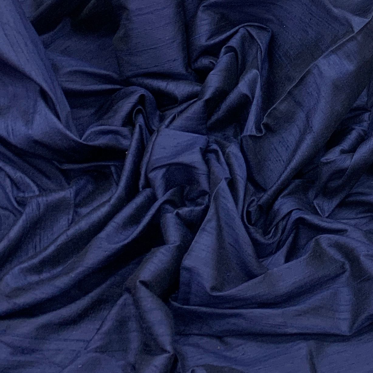 Admiral Blue Plain Raw Silk Fabric. Continuous filaments of silk, with no twist, which have been reeled from cocoons but are unprocessed and comes with a slub effect. Raw Silk has a nubby feel with a low sheen. It resembles cotton in surface texture and sews easily. When these short fibers are spun into yarns, the resulting yarns have occasional slubs and specks that add to its appeal. Nubs vary between different weaves. Sportier in appearance, Raw Silk has the look of hopsack but is much softer.
