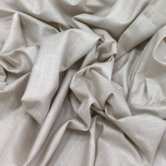 Biscuit Beige Plain Cotton Matka Fabric. Matka is an Indian term for rough handloom silk fabric made from very thick yarns spun out of the pierced cocoon in the weft and organzine in the warp. The yarns are obtained from short ends of silk from Mulberry silkworms and spun by hand without removing the gum. As such, there are slubs and irregularities that give the fabric a unique character. It looks something like tweed, but the fibers are all the same color.
