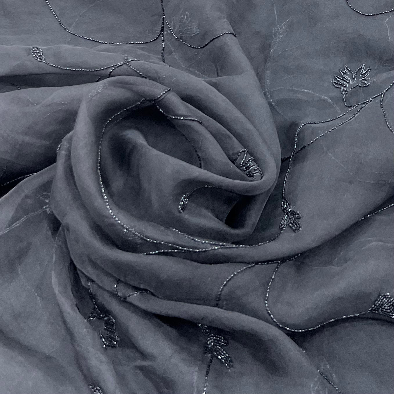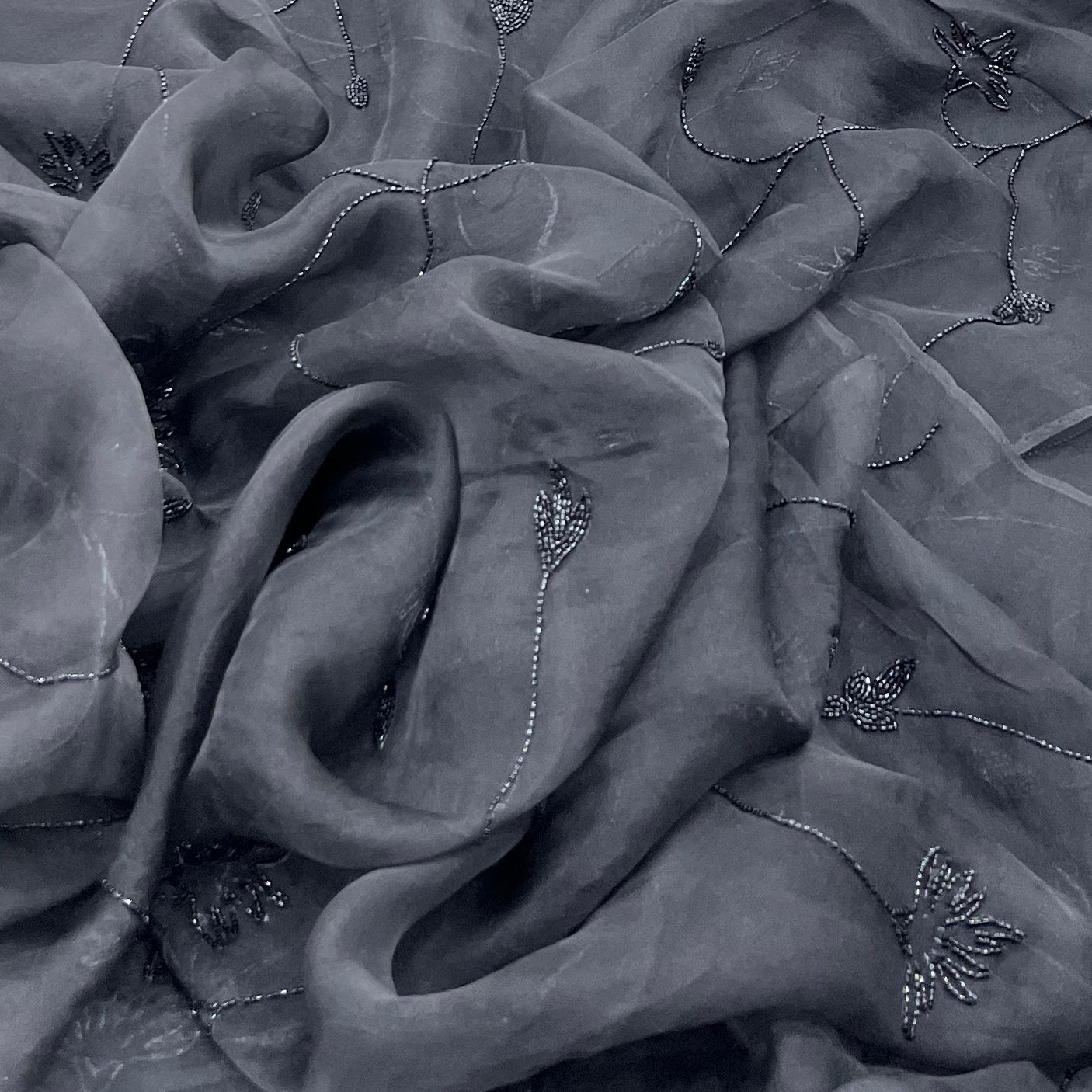 Organza is a lightweight, sheer fabric with a crisp finish, perfect for creating elegant sarees, gowns, and couture designs. Its subtle transparency and fine texture bring a refined, luxurious touch to any ensemble