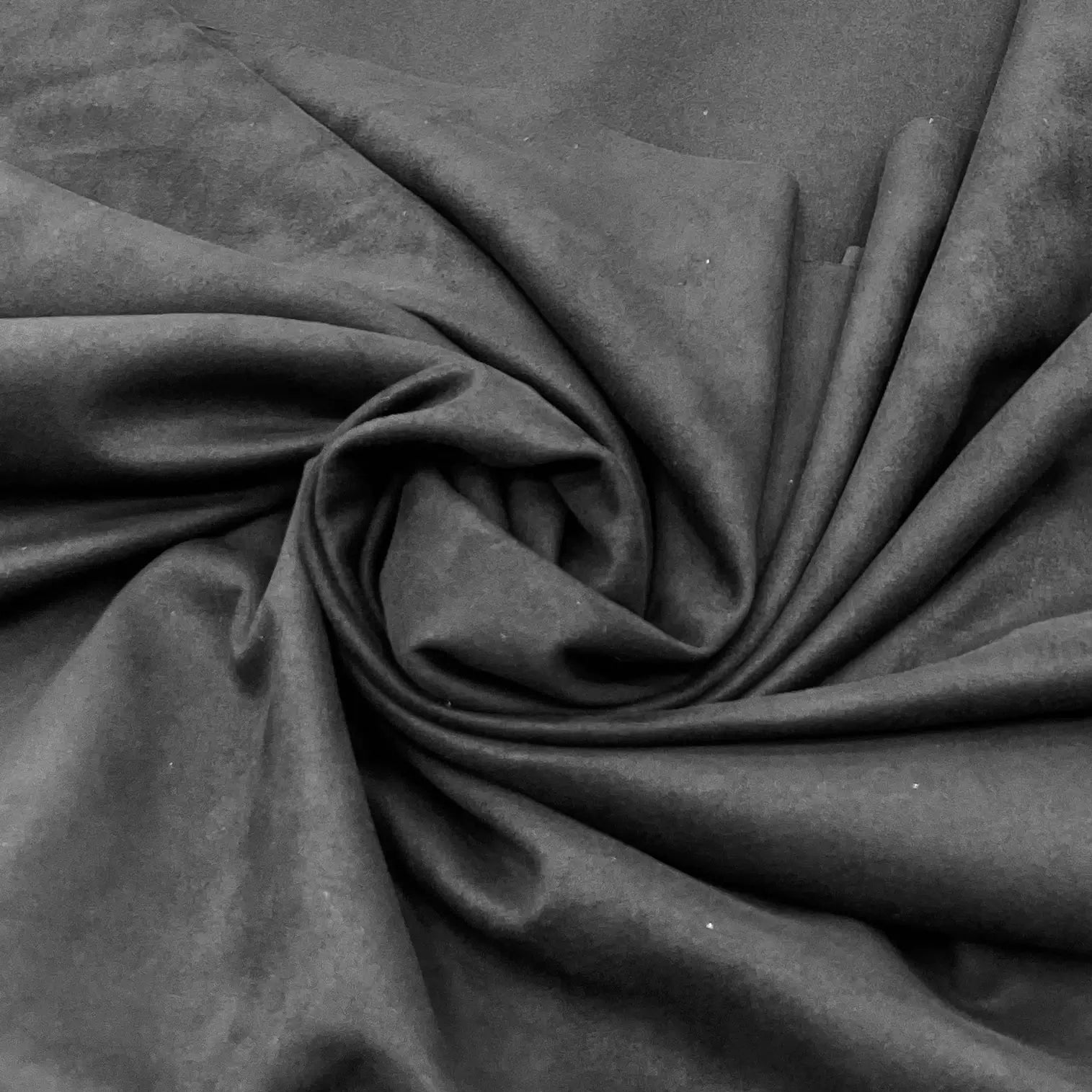 Suede fabric features a luxurious, velvety feel with a subtle matte finish. Soft and flexible, it drapes gracefully, making it perfect for jackets, skirts, dresses, and accessories. Composition: 95% Polyester, 5% Spandex