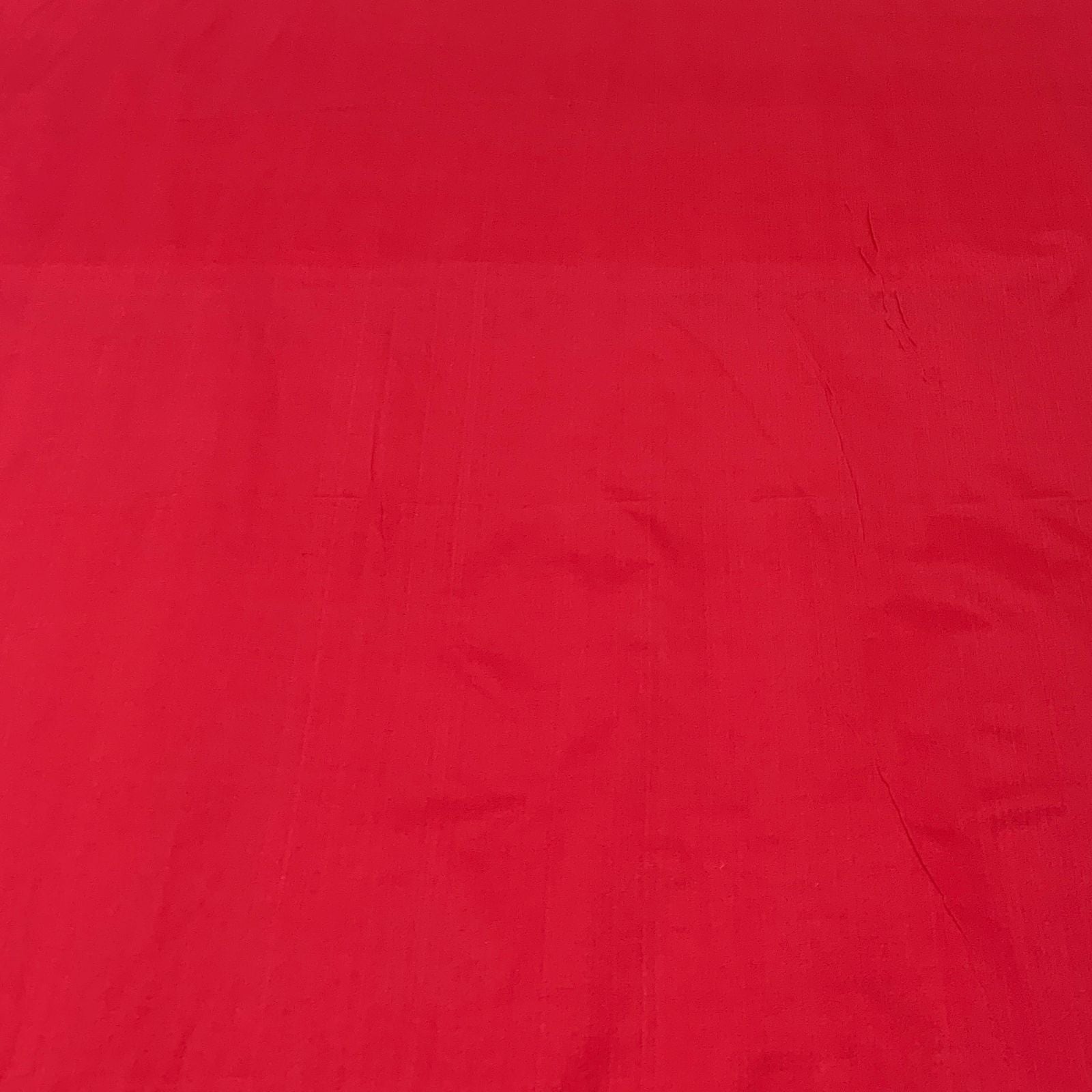 Blood Red Plain Pure Silk Fabric. Continuous filaments of silk, with no twist, which have been reeled from cocoons but are unprocessed and comes with a slub effect. Raw Silk has a nubby feel with a low sheen. It resembles cotton in surface texture and sews easily. When these short fibers are spun into yarns, the resulting yarns have occasional slubs and specks that add to its appeal. Nubs vary between different weaves. Sportier in appearance, Raw Silk has the look of hopsack but is much softer.
