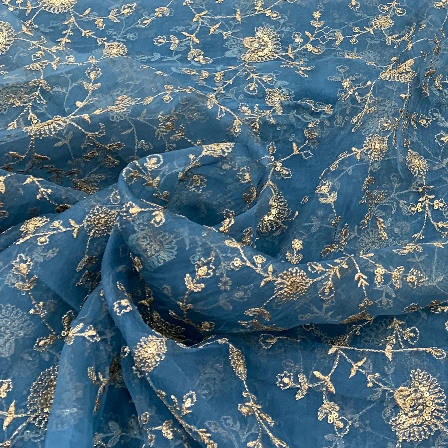 Organza is a lightweight, sheer fabric with a crisp finish, perfect for creating elegant sarees, gowns, and couture designs. Its subtle transparency and fine texture bring a refined, luxurious touch to any ensemble