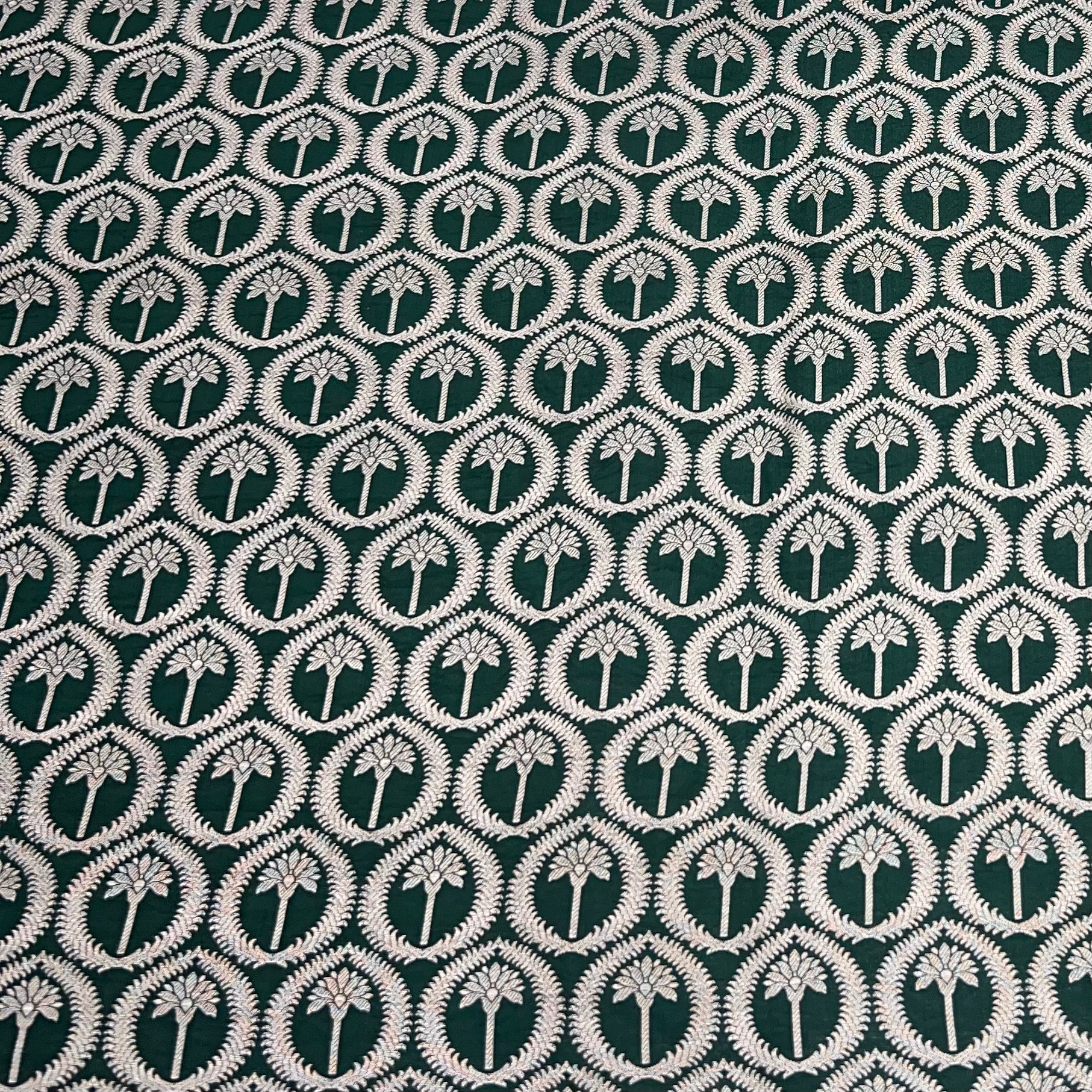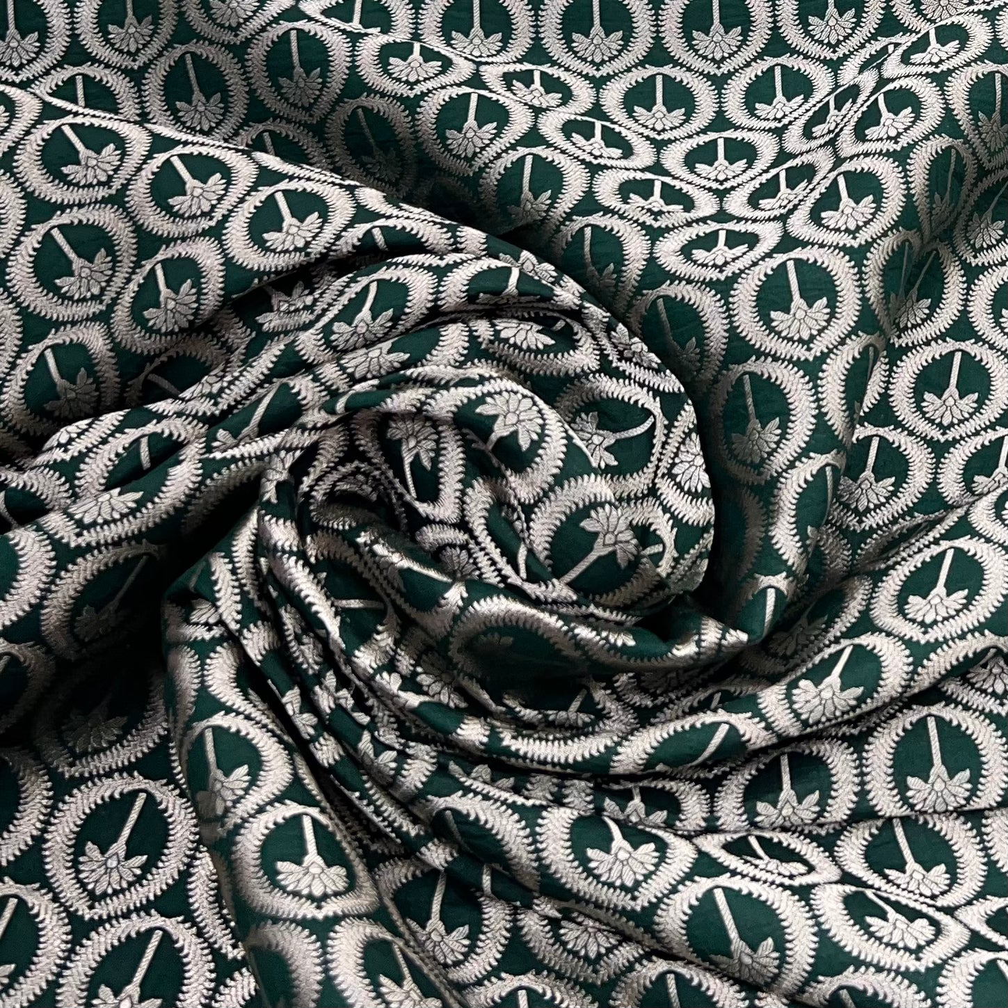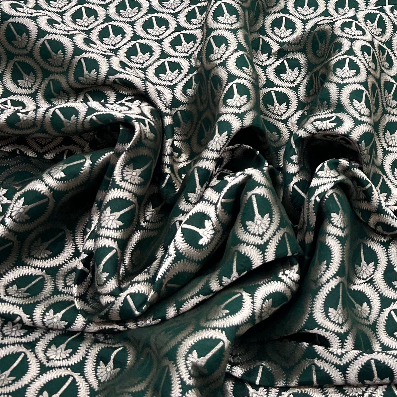 Silk brocade is an opulent fabric crafted with elaborate designs in silk and metallic threads, creating a richly textured surface. Celebrated for its durability and majestic appeal, it is perfect for sarees, lehengas, sherwanis, jackets, and festive attire, bringing a touch of timeless luxury to every creation