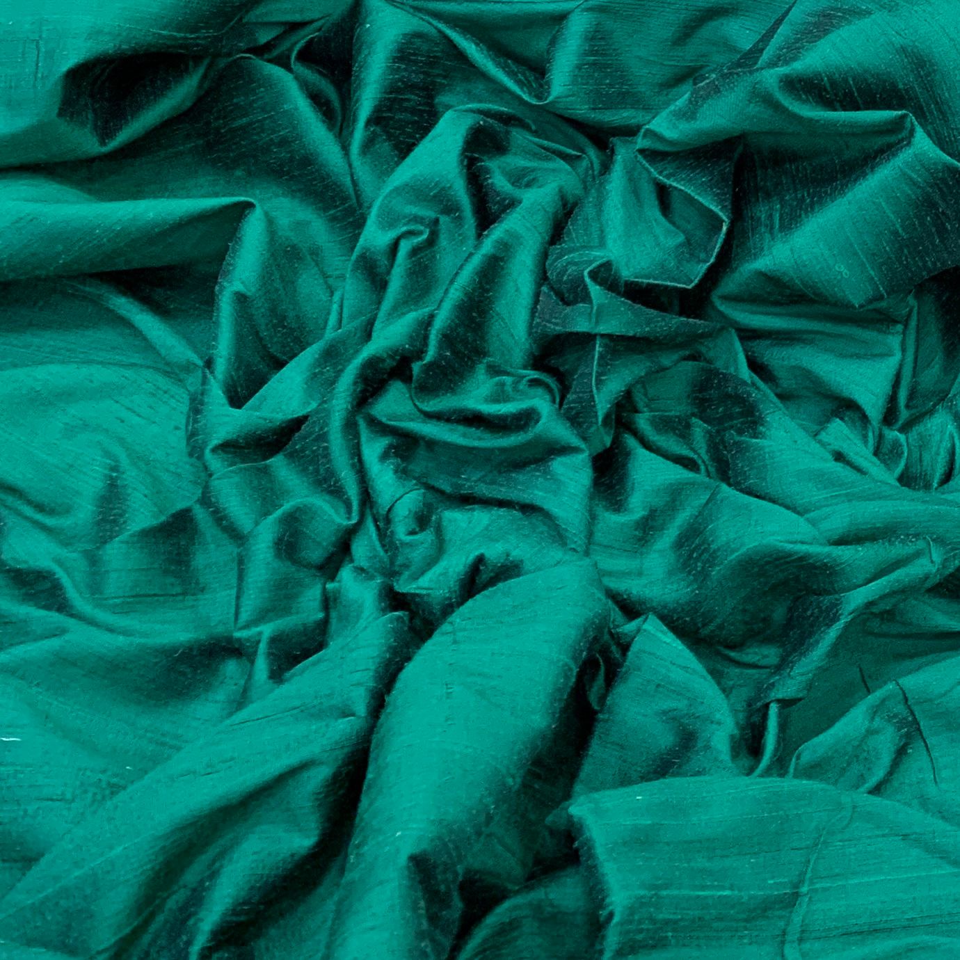Bottle Green Plain Raw Silk Fabric. Continuous filaments of silk, with no twist, which have been reeled from cocoons but are unprocessed and comes with a slub effect. Raw Silk has a nubby feel with a low sheen. It resembles cotton in surface texture and sews easily. When these short fibers are spun into yarns, the resulting yarns have occasional slubs and specks that add to its appeal. Nubs vary between different weaves. Sportier in appearance, Raw Silk has the look of hopsack but is much softer.