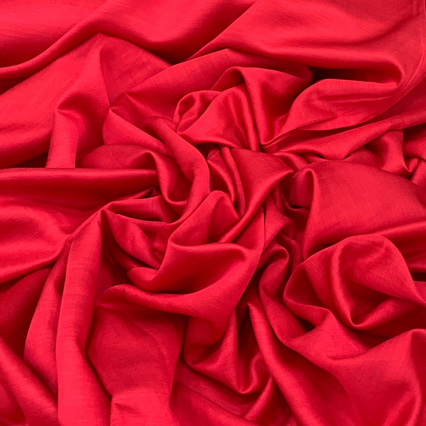 Bright Red Plain Satin Linen Fabric. Linen being a light breathable fabric with satin having a sheer sheen of glow makes satin linen a beautiful fabric to wear.