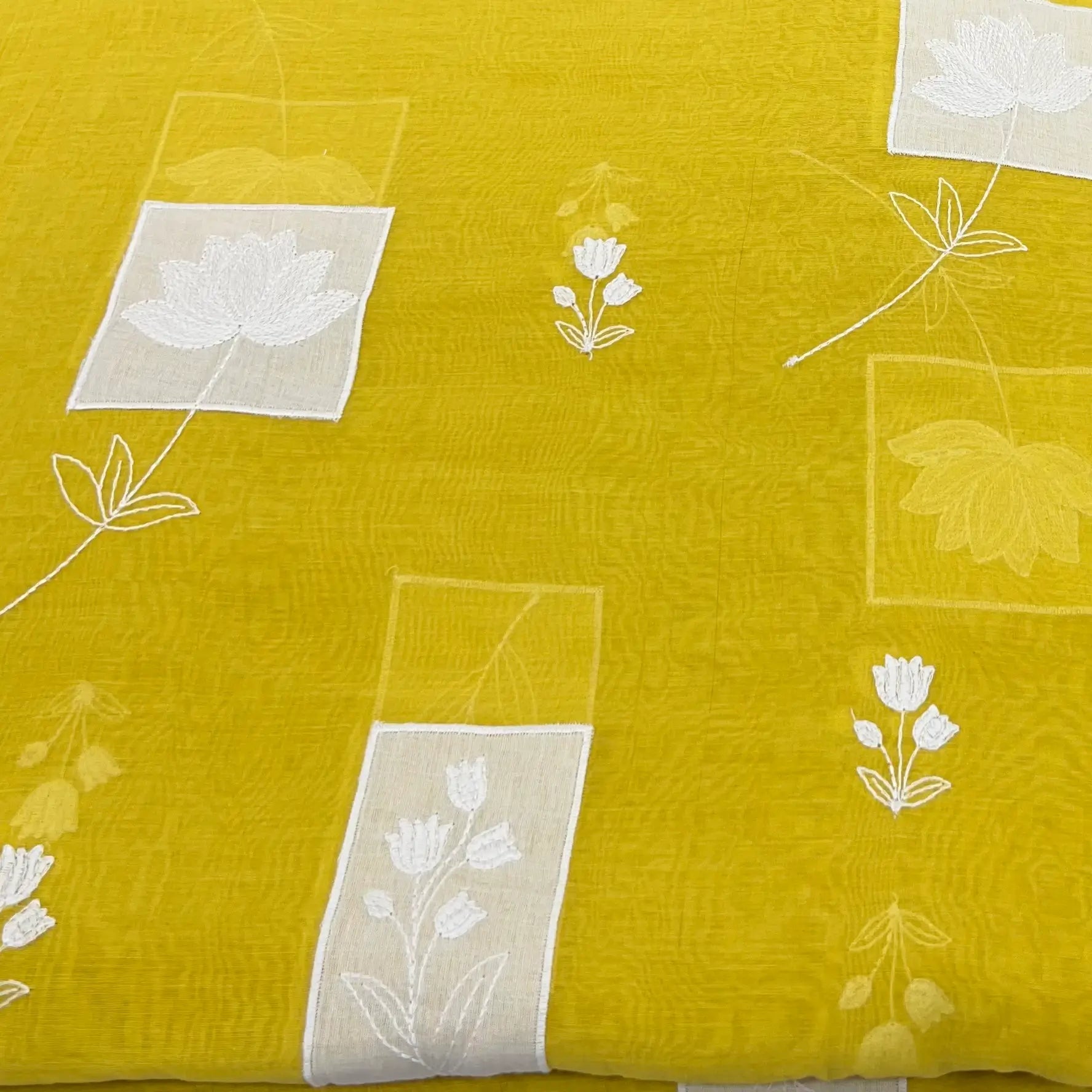 Bright Yellow Floral Applique Mul Chanderi Embroidery