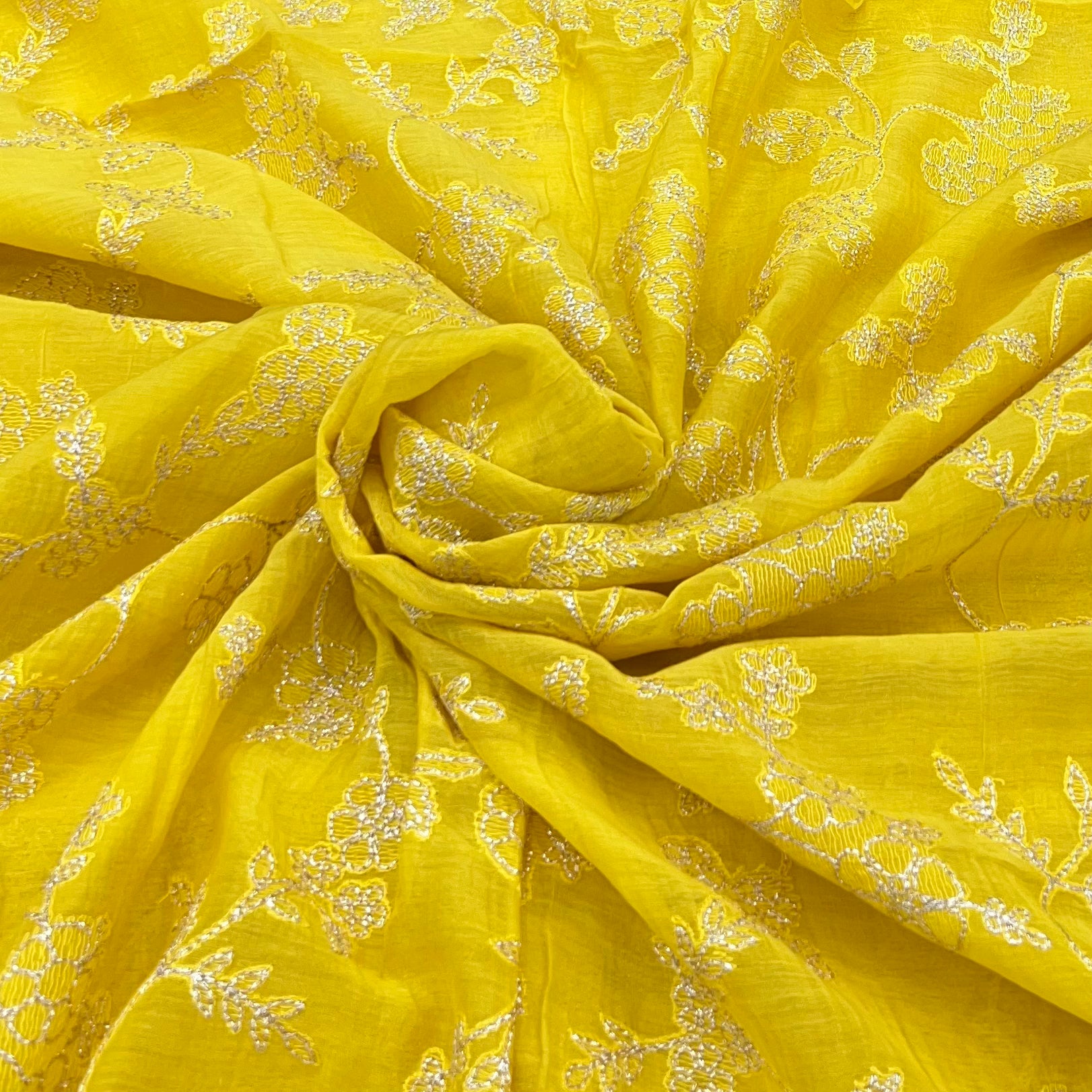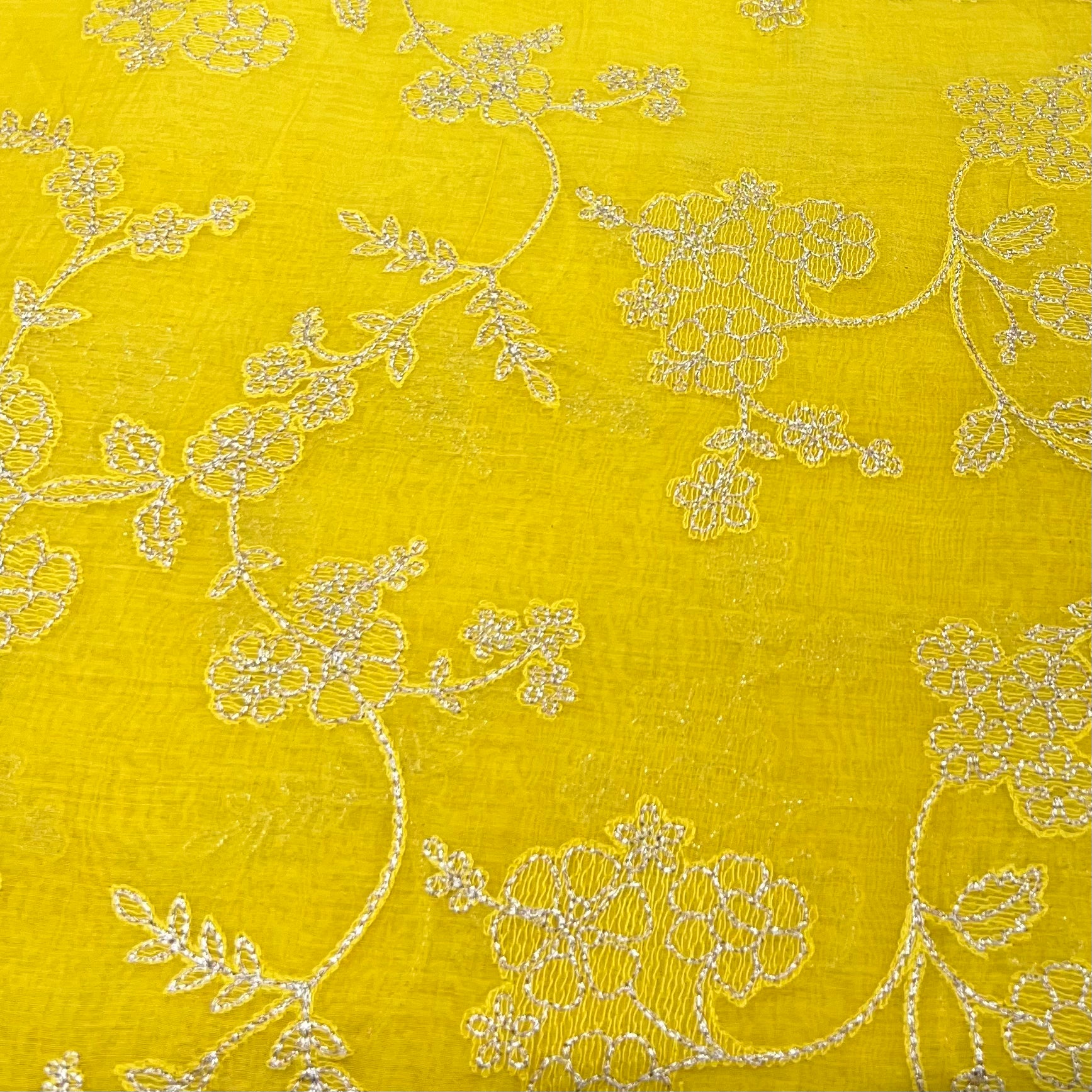 Bright Yellow Floral Jal Zari Mul Chanderi Embroidery