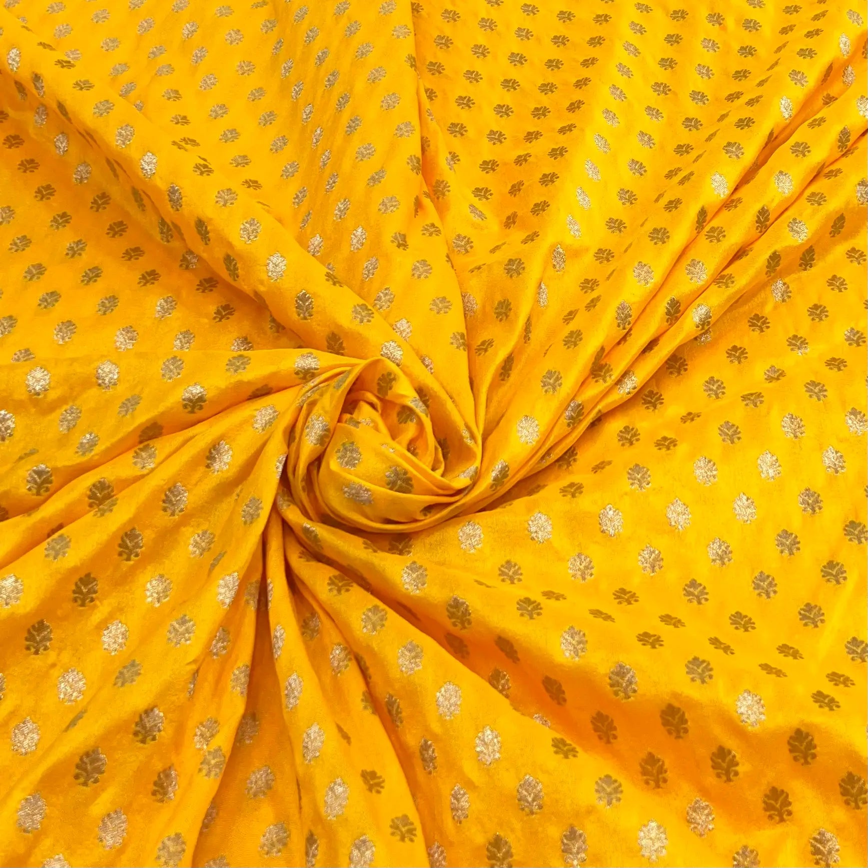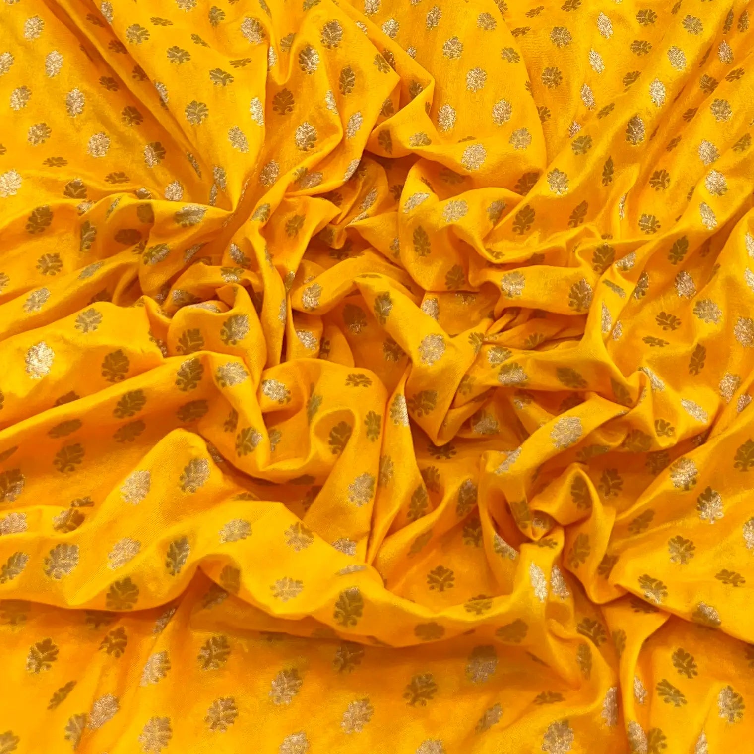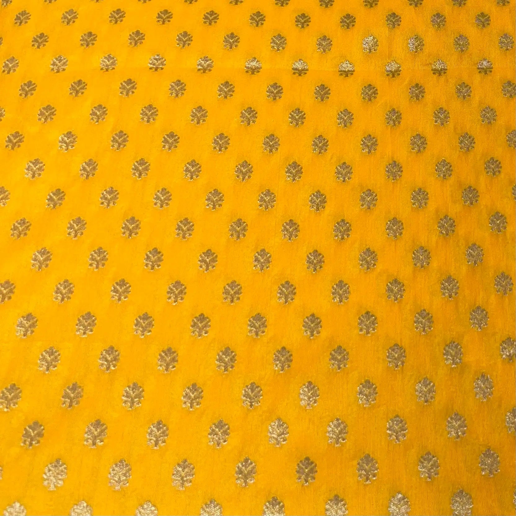 Silk brocade is an opulent fabric crafted with elaborate designs in silk and metallic threads, creating a richly textured surface. Celebrated for its durability and majestic appeal, it is perfect for sarees, lehengas, sherwanis, jackets, and festive attire, bringing a touch of timeless luxury to every creation