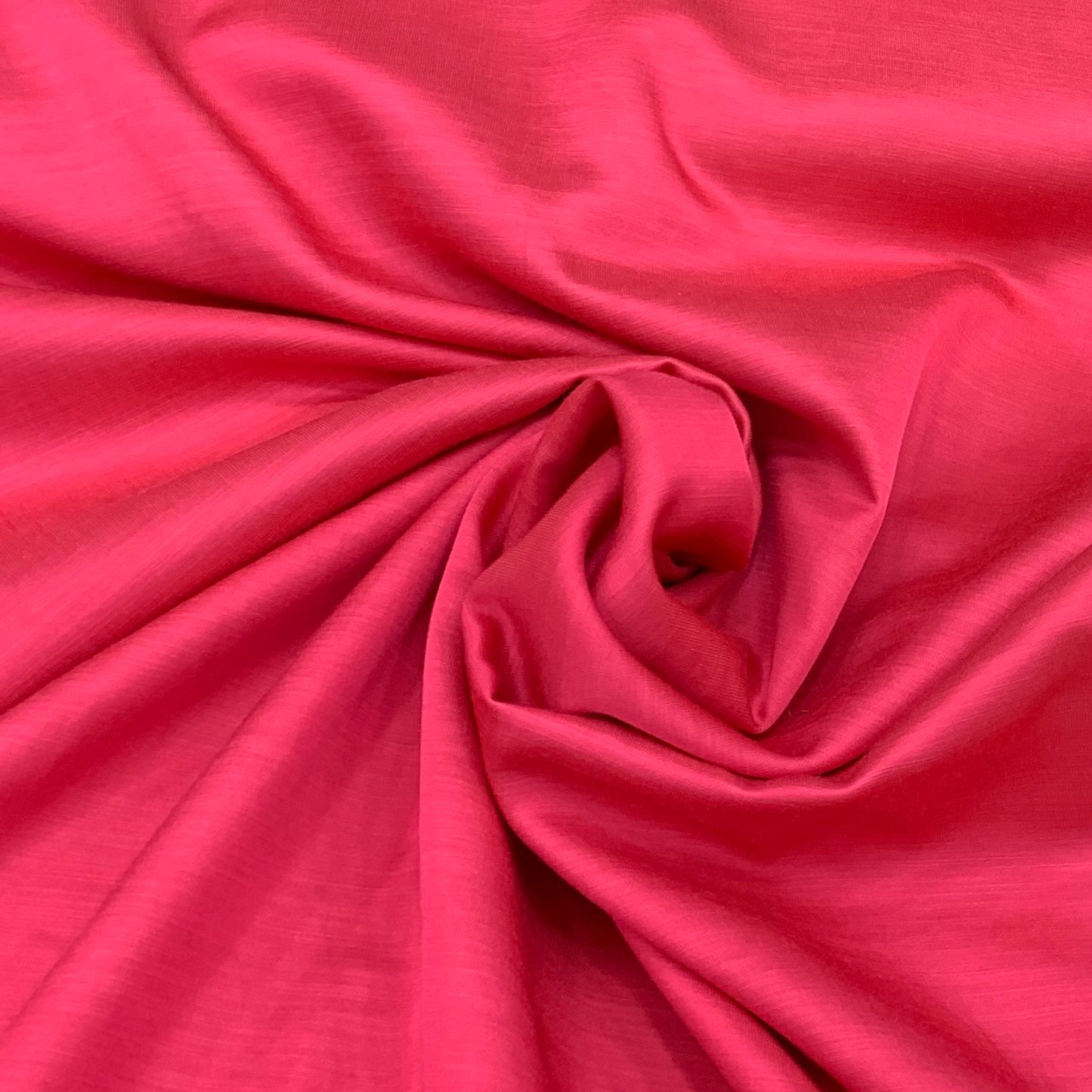 Carrot Pink Plain Satin Linen Fabric. Linen being a light breathable fabric with satin having a sheer sheen of glow makes satin linen a beautiful fabric to wear.