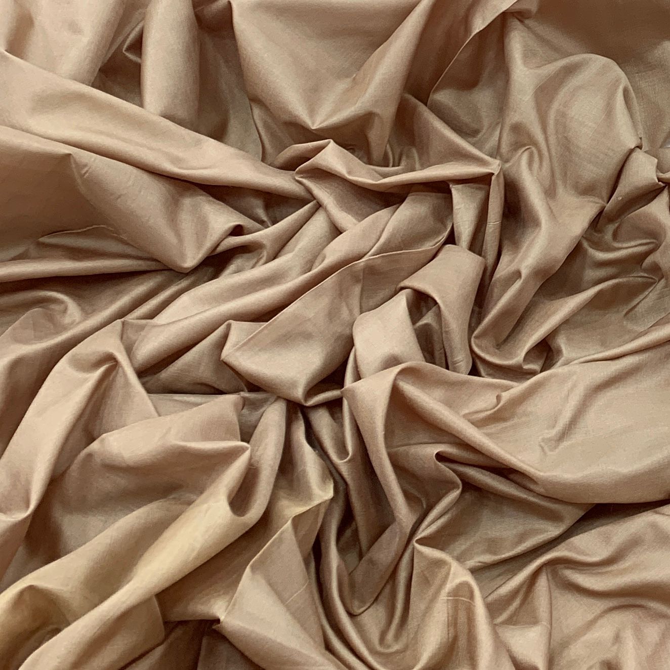 Chikoo Gold Plain Pure Silk Fabric. Continuous filaments of silk, with no twist, which have been reeled from cocoons but are unprocessed and comes with a slub effect. Raw Silk has a nubby feel with a low sheen. It resembles cotton in surface texture and sews easily. When these short fibers are spun into yarns, the resulting yarns have occasional slubs and specks that add to its appeal. Nubs vary between different weaves. Sportier in appearance, Raw Silk has the look of hopsack but is much softer.
