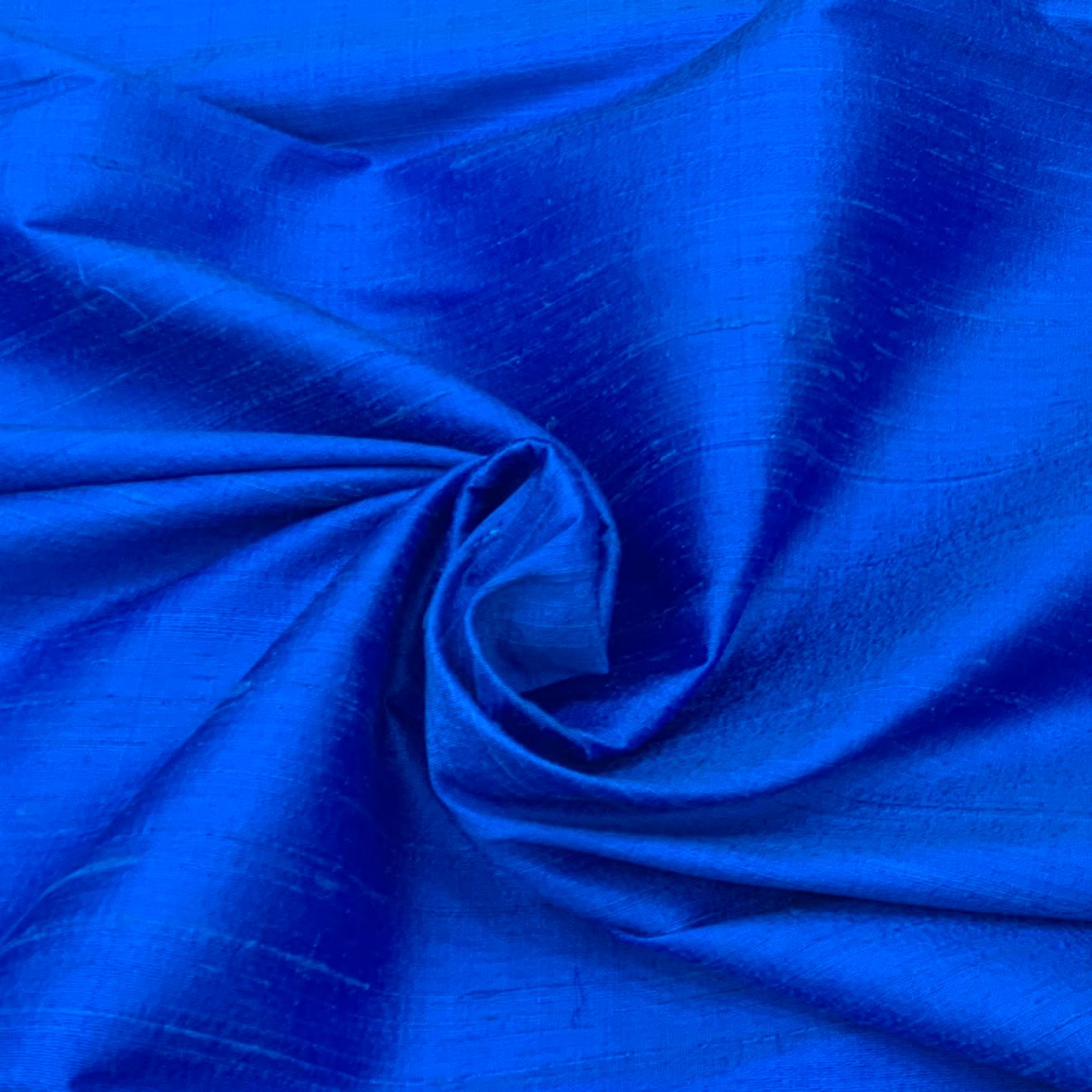 Cobalt Blue Plain Raw Silk Fabric. Continuous filaments of silk, with no twist, which have been reeled from cocoons but are unprocessed and comes with a slub effect. Raw Silk has a nubby feel with a low sheen. It resembles cotton in surface texture and sews easily. When these short fibers are spun into yarns, the resulting yarns have occasional slubs and specks that add to its appeal. Nubs vary between different weaves. Sportier in appearance, Raw Silk has the look of hopsack but is much softer.