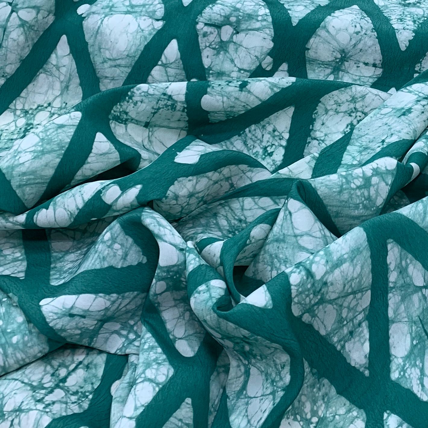 Sea Green Tie-dye Design Crepe Printed Fabric