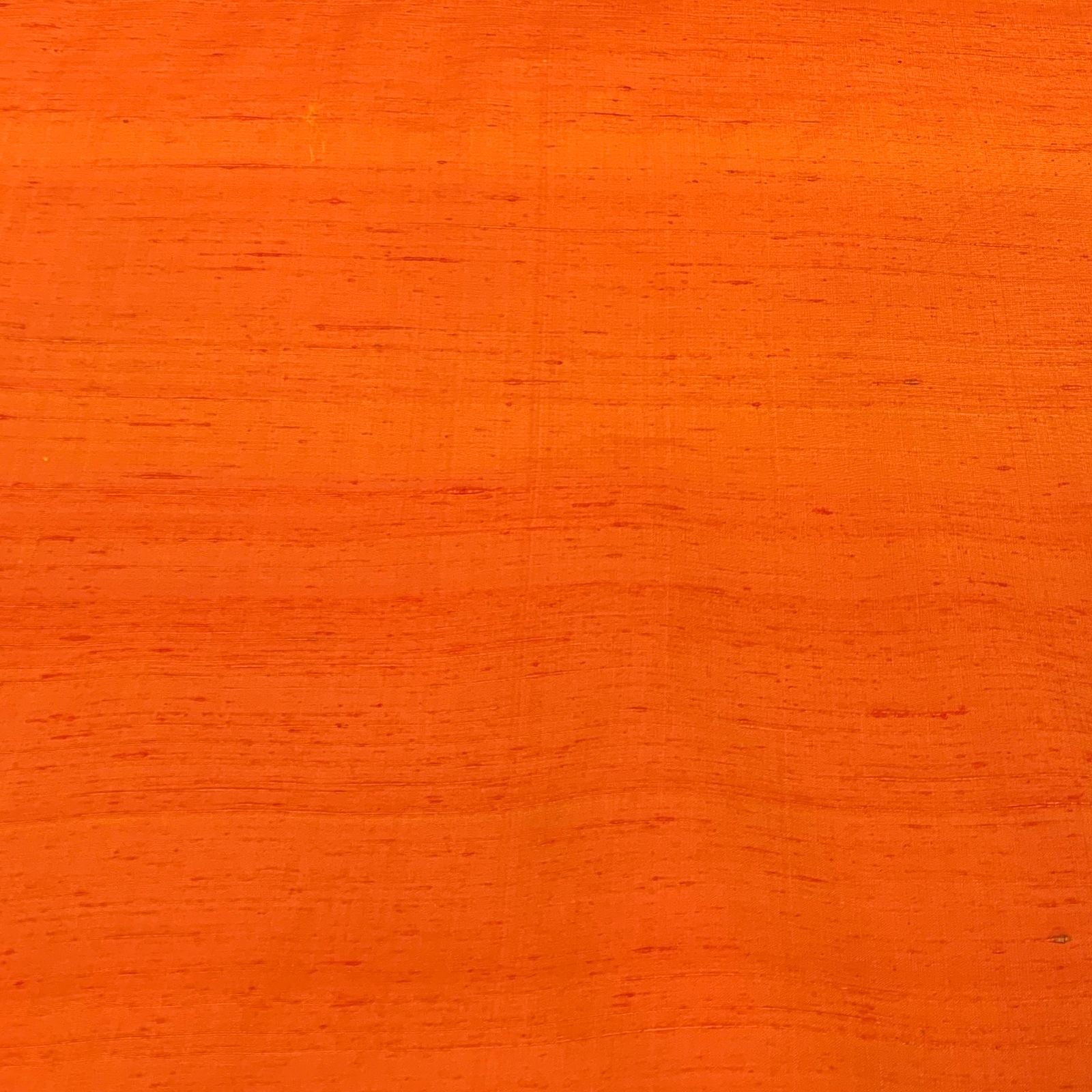 Dark Orange Plain Raw Silk Fabric. Continuous filaments of silk, with no twist, which have been reeled from cocoons but are unprocessed and comes with a slub effect. Raw Silk has a nubby feel with a low sheen. It resembles cotton in surface texture and sews easily. When these short fibers are spun into yarns, the resulting yarns have occasional slubs and specks that add to its appeal. Nubs vary between different weaves. Sportier in appearance, Raw Silk has the look of hopsack but is much softer.
