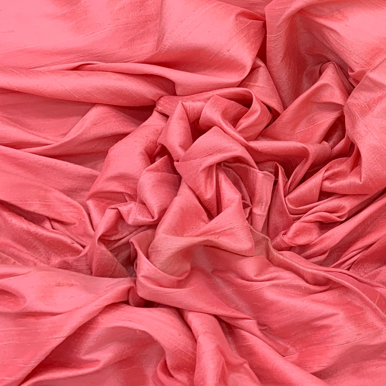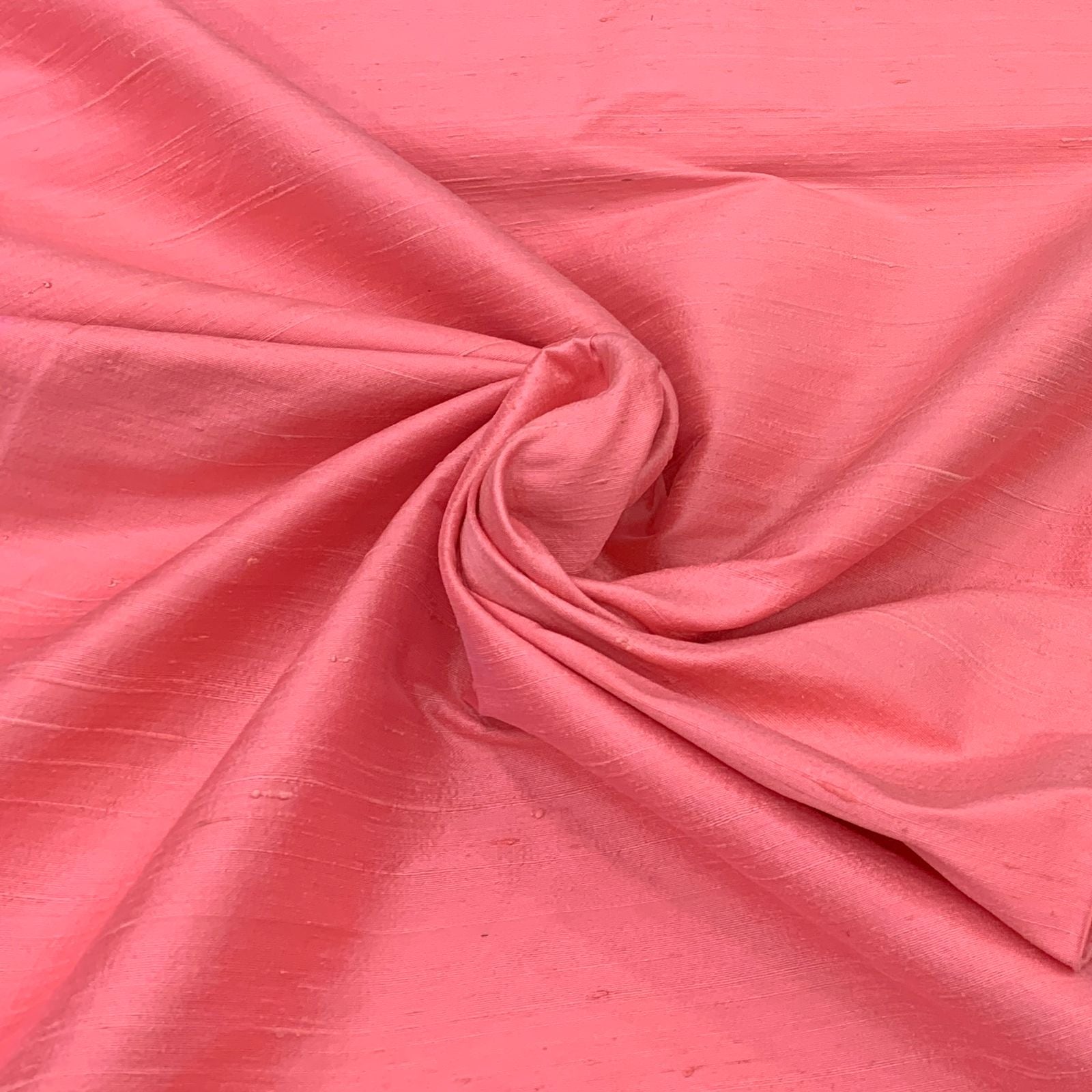 Dark Peach Plain Raw Silk Fabric. Continuous filaments of silk, with no twist, which have been reeled from cocoons but are unprocessed and comes with a slub effect. Raw Silk has a nubby feel with a low sheen. It resembles cotton in surface texture and sews easily. When these short fibers are spun into yarns, the resulting yarns have occasional slubs and specks that add to its appeal. Nubs vary between different weaves. Sportier in appearance, Raw Silk has the look of hopsack but is much softer.