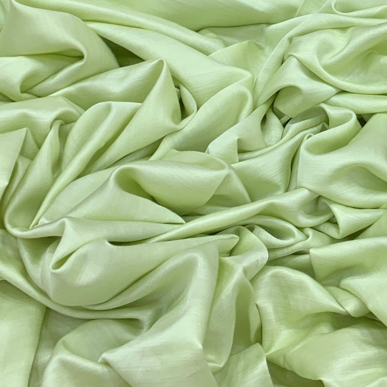 Dark Pista Green Plain Satin Linen Fabric. Linen being a light breathable fabric with satin having a sheer sheen of glow makes satin linen a beautiful fabric to wear.