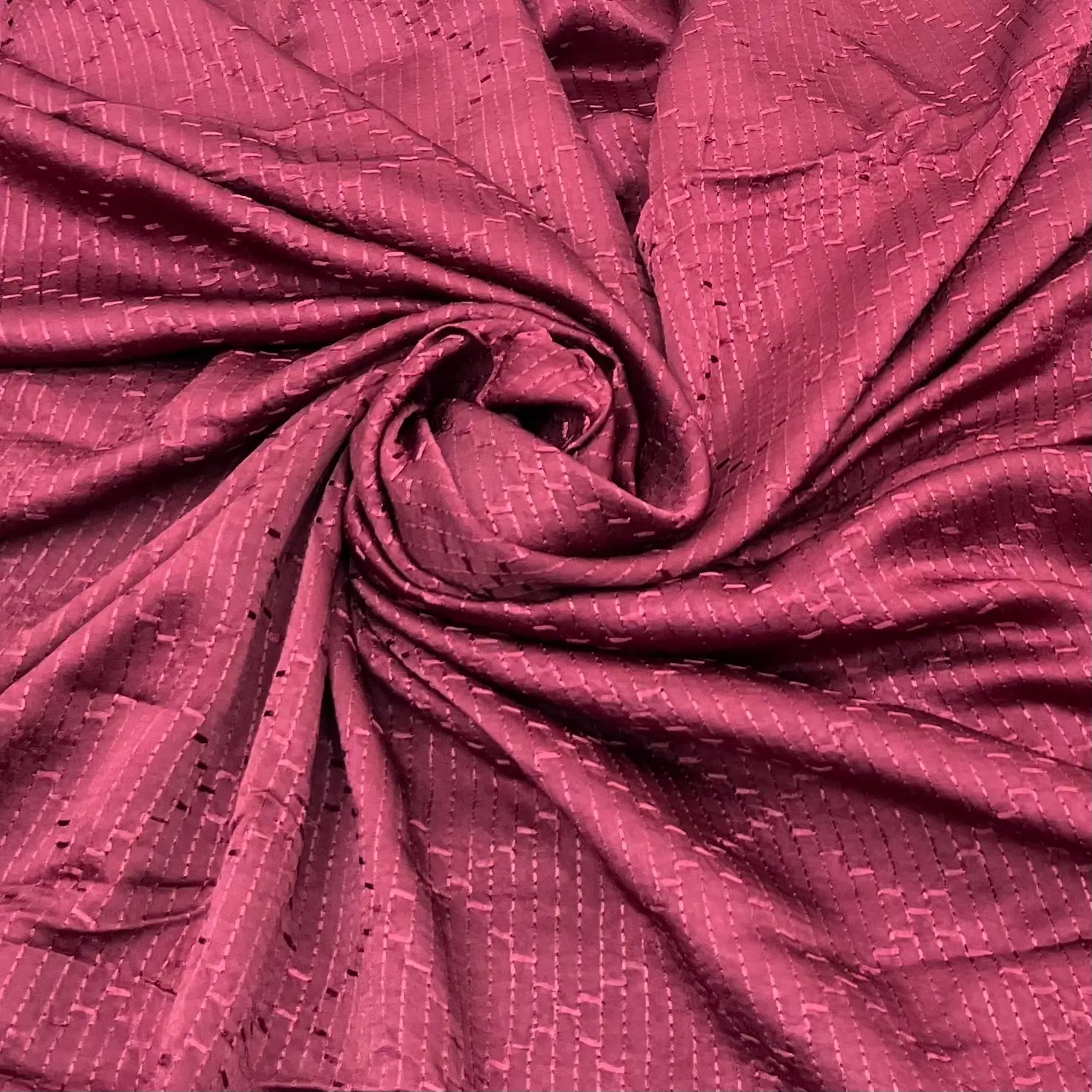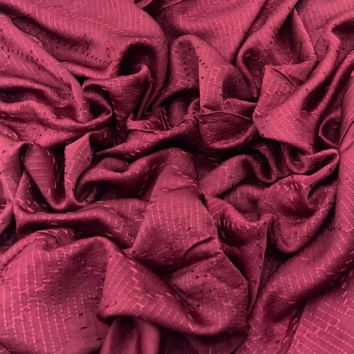 Deep Maroon Geometric Thread Slub Satin Embroidery