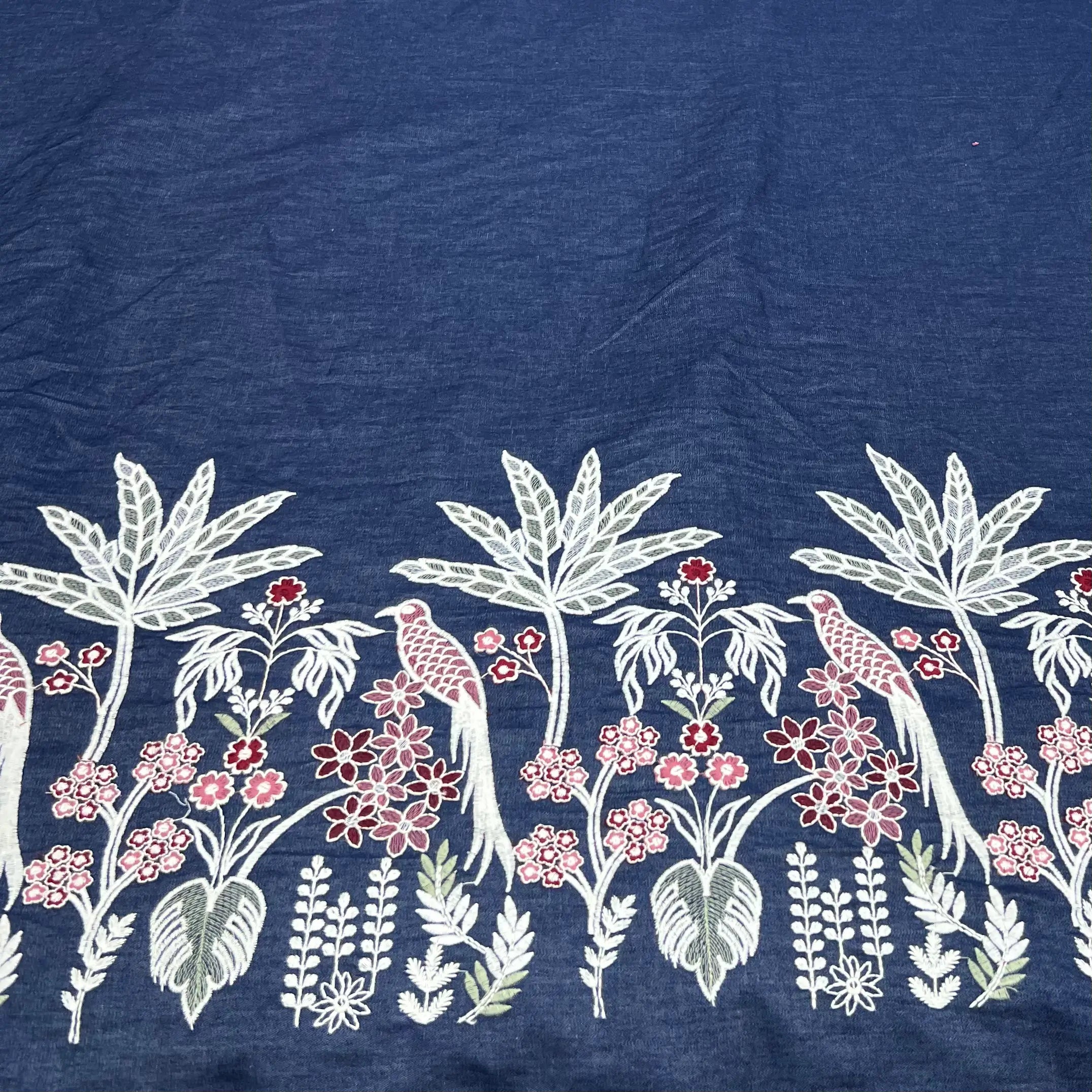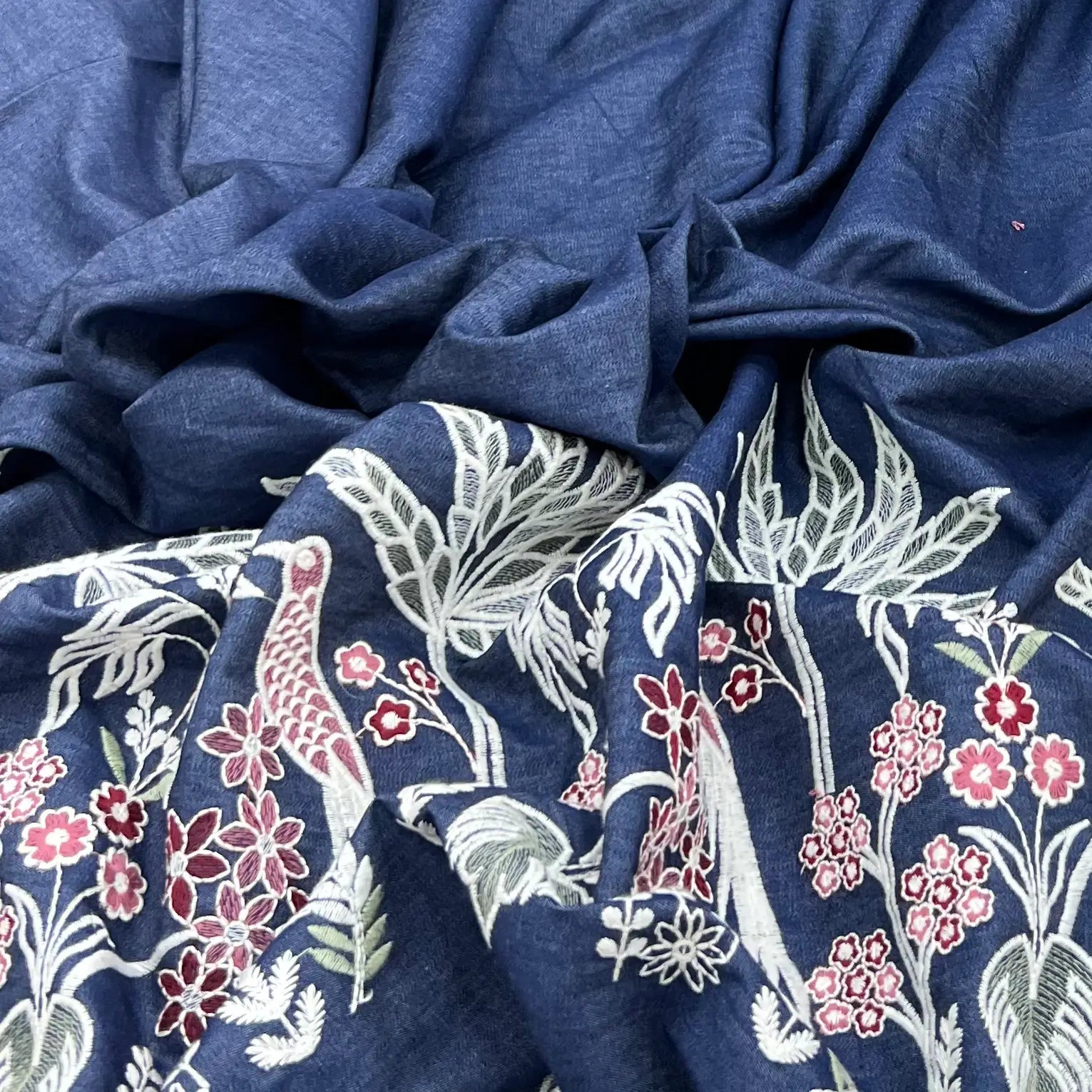 Embroidered denim fabric combines the durability of denim with decorative stitched details for a stylish twist. Strong yet versatile, it’s perfect for jackets, skirts, dresses, and statement outfits, adding character, texture, and a fashion-forward edge to everyday wear