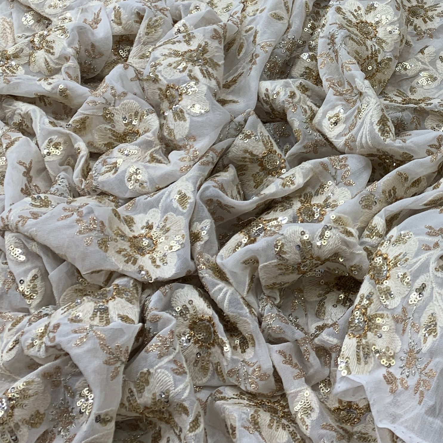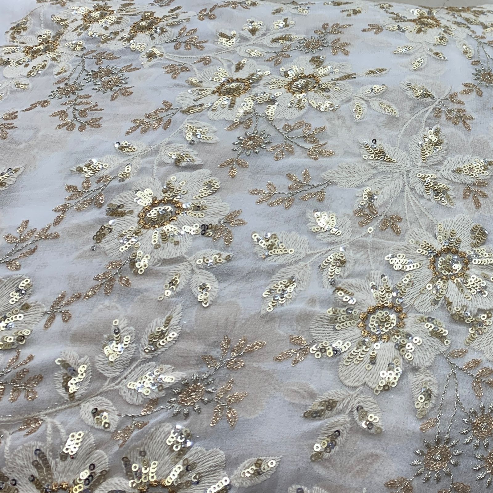 Georgette embroidered fabric is lightweight, flowy, and stylish, perfect for both men's and women's fashion. Ideal for sarees, gowns, lehengas, kurtis, dupattas, sherwanis, and jackets, its soft drape adds elegance, making it a refined choice for weddings, festivals, and special occasions