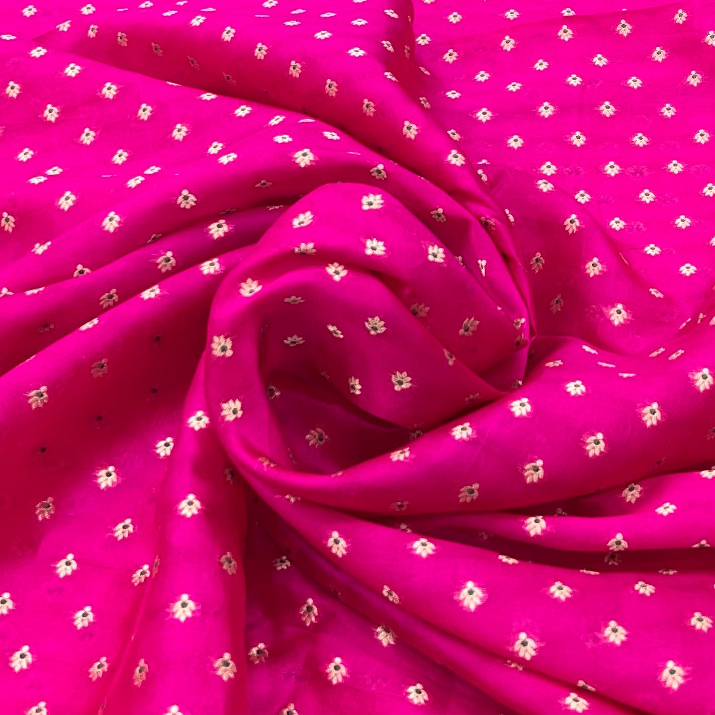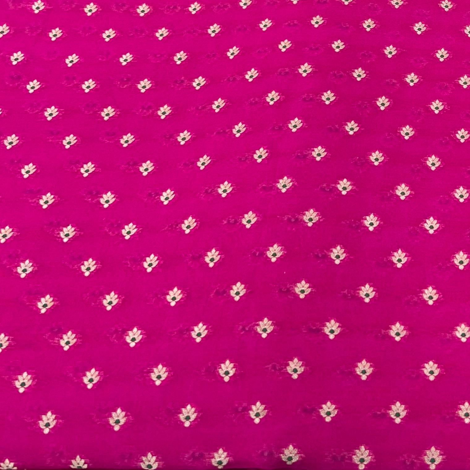 Silk brocade is an opulent fabric crafted with elaborate designs in silk and metallic threads, creating a richly textured surface. Celebrated for its durability and majestic appeal, it is perfect for sarees, lehengas, sherwanis, jackets, and festive attire, bringing a touch of timeless luxury to every creation