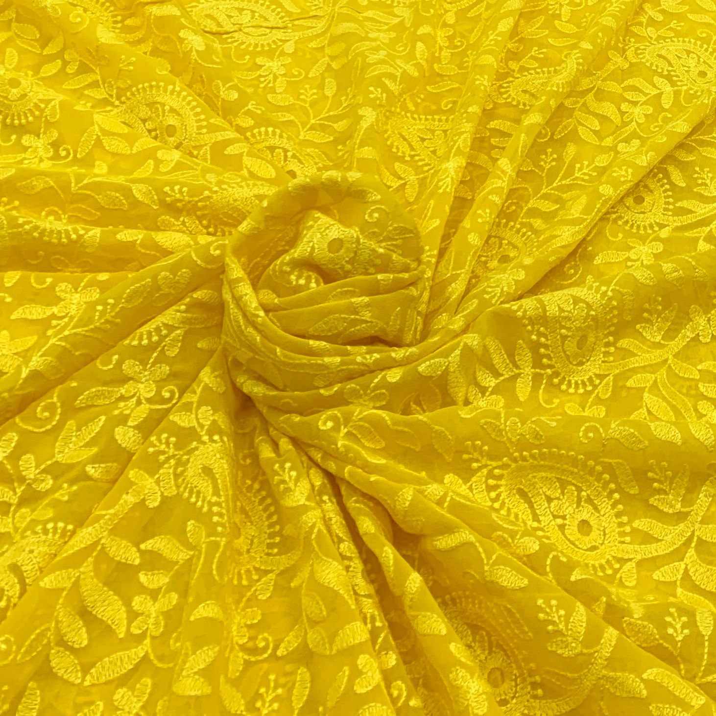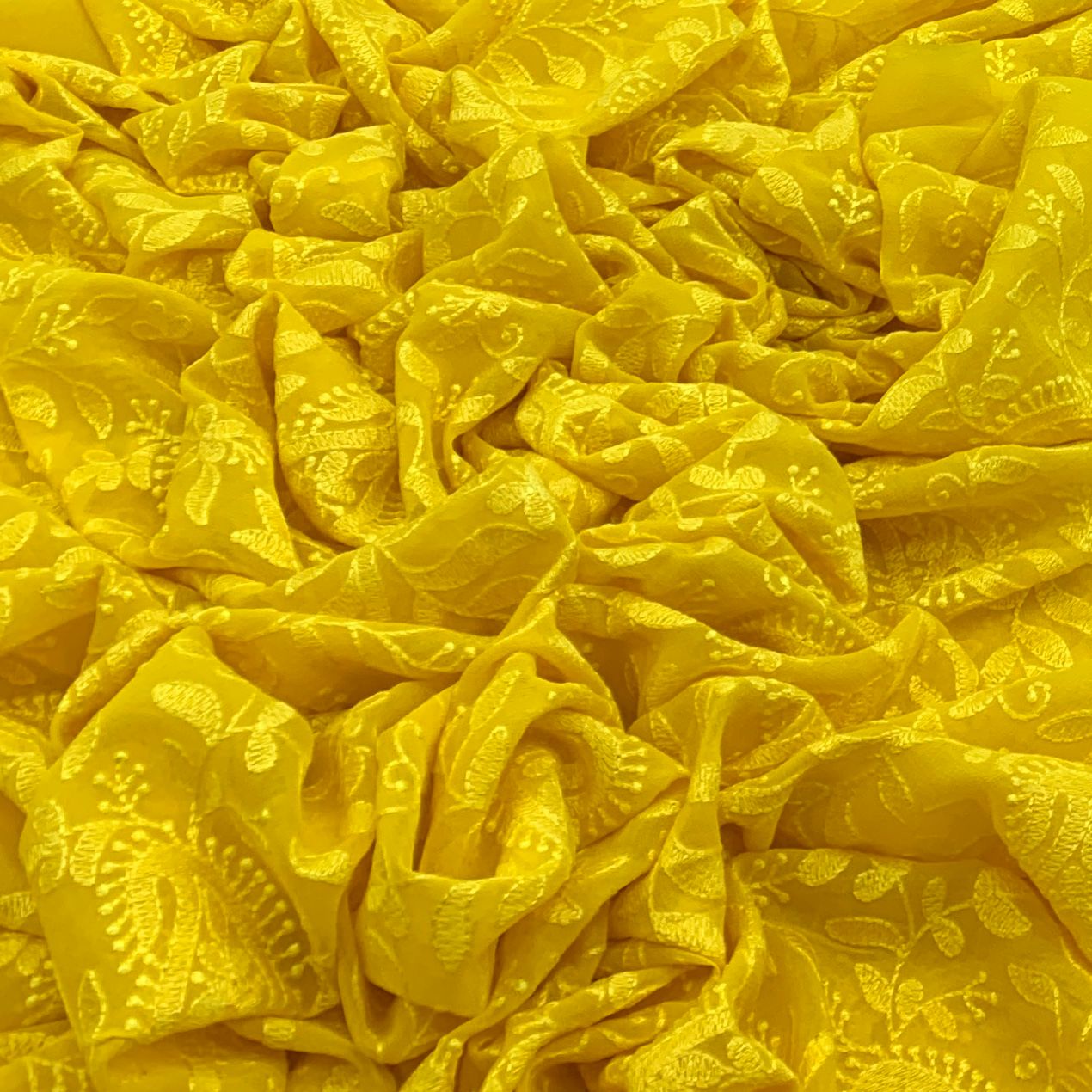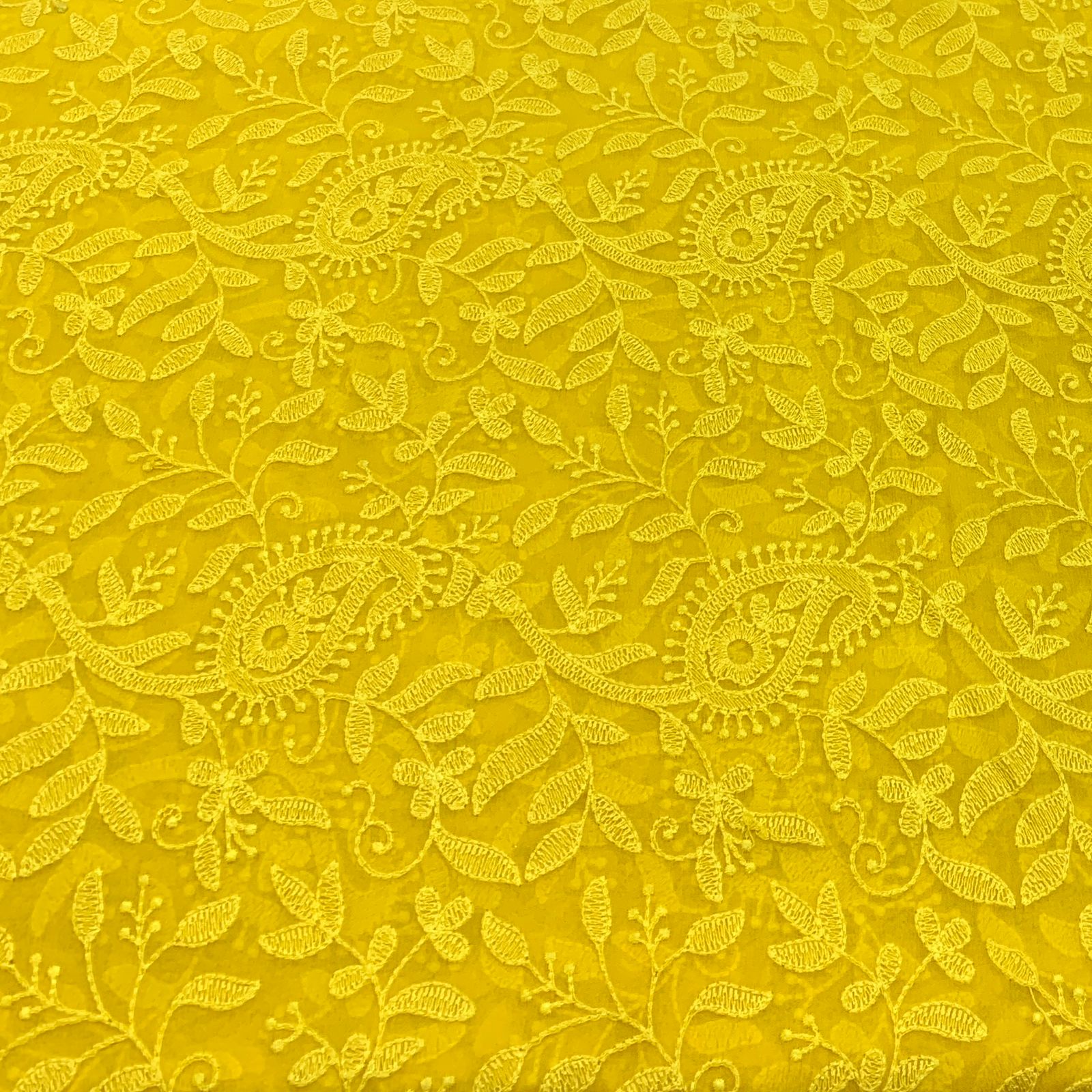 Georgette embroidered fabric is lightweight, flowy, and stylish, perfect for both men's and women's fashion. Ideal for sarees, gowns, lehengas, kurtis, dupattas, sherwanis, and jackets, its soft drape adds elegance, making it a refined choice for weddings, festivals, and special occasions