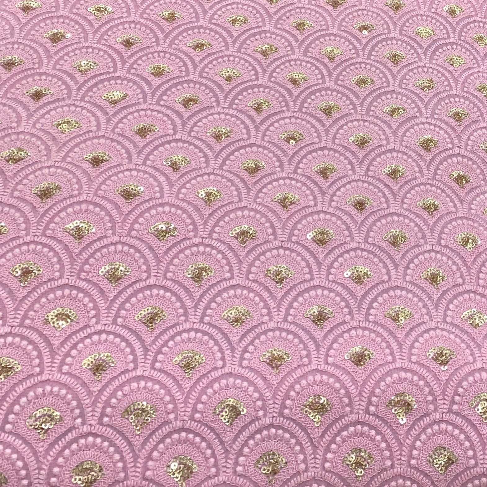 Georgette embroidered fabric is lightweight, flowy, and stylish, perfect for both men's and women's fashion. Ideal for sarees, gowns, lehengas, kurtis, dupattas, sherwanis, and jackets, its soft drape adds elegance, making it a refined choice for weddings, festivals, and special occasions