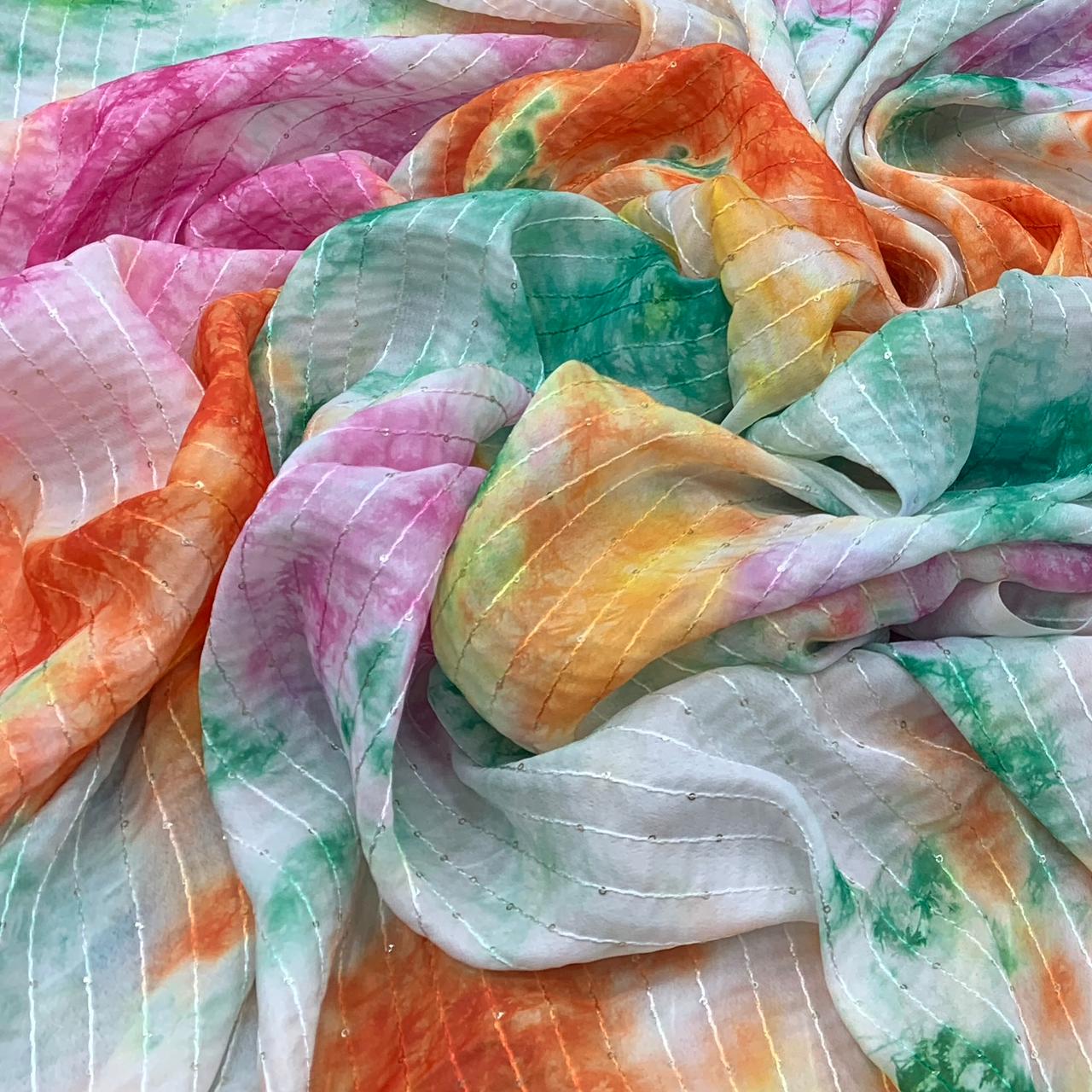 Georgette embroidered fabric is lightweight, flowy, and stylish, perfect for both men's and women's fashion. Ideal for sarees, gowns, lehengas, kurtis, dupattas, sherwanis, and jackets, its soft drape adds elegance, making it a refined choice for weddings, festivals, and special occasions
