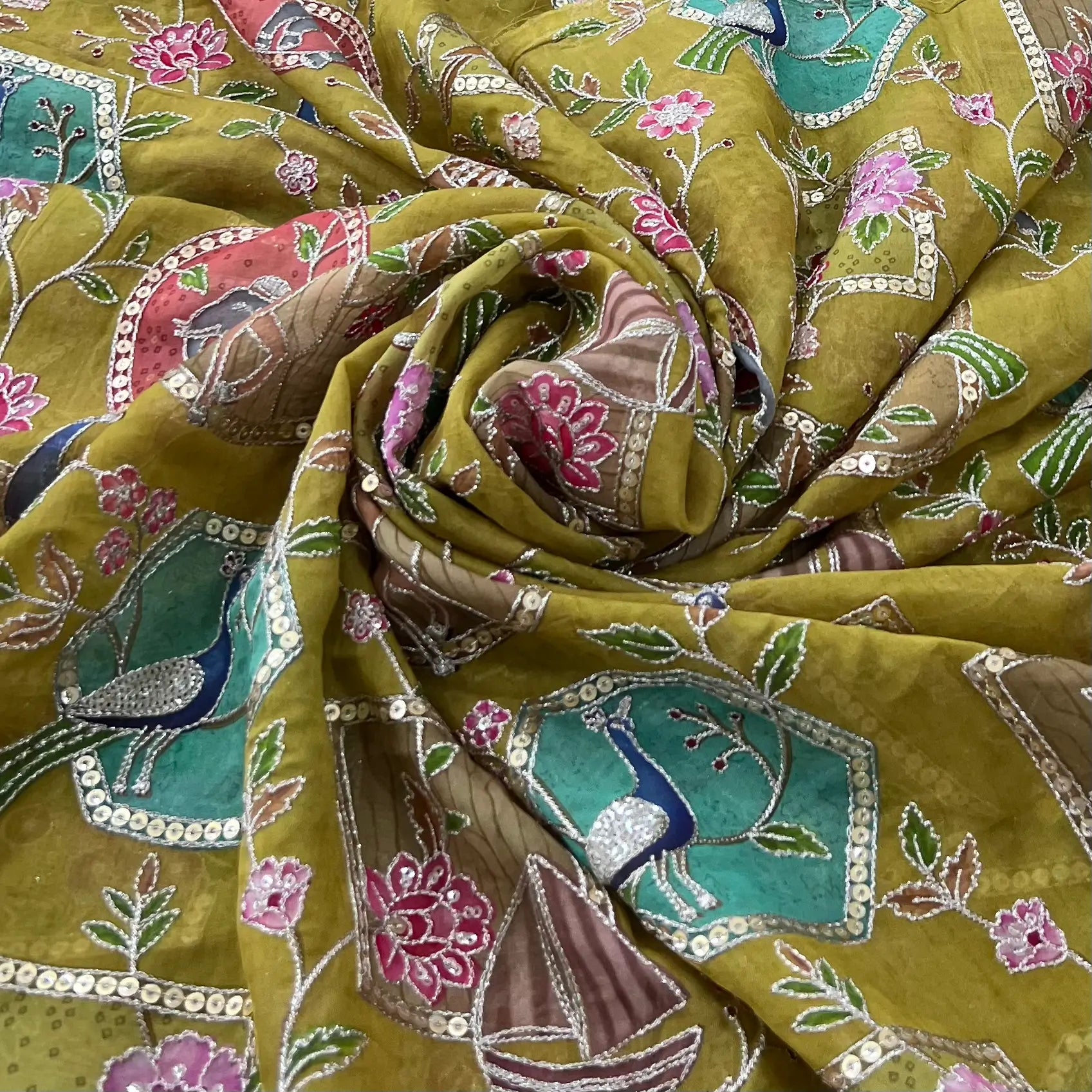 Crepe fabric is airy and soft with a soft hand feel and fluid drape, that adds a touch of sophistication and flow. Its elegant fall makes it ideal for sarees, kurtas, dresses, and blouses. Versatile and comfortable, it enhances both classic and modern wardrobes with an effortlessly polished aesthetic