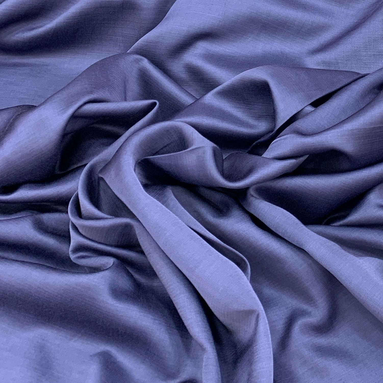 Greish Dark Blue Plain Satin Linen Fabric. Linen being a light breathable fabric with satin having a sheer sheen of glow makes satin linen a beautiful fabric to wear.