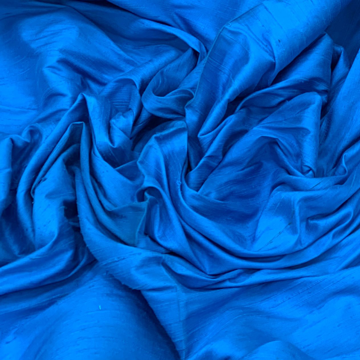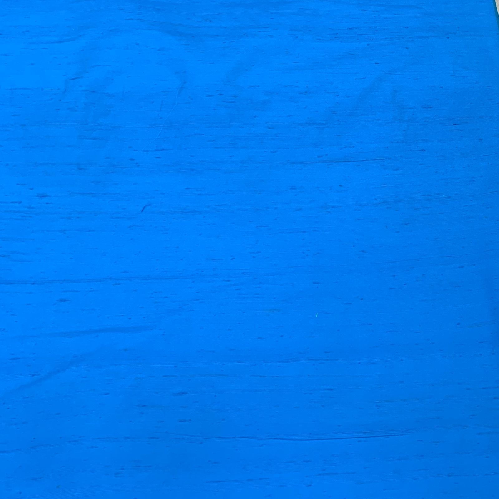 Lapis Blue Plain Raw Silk Fabric. Continuous filaments of silk, with no twist, which have been reeled from cocoons but are unprocessed and comes with a slub effect. Raw Silk has a nubby feel with a low sheen. It resembles cotton in surface texture and sews easily. When these short fibers are spun into yarns, the resulting yarns have occasional slubs and specks that add to its appeal. Nubs vary between different weaves. Sportier in appearance, Raw Silk has the look of hopsack but is much softer.