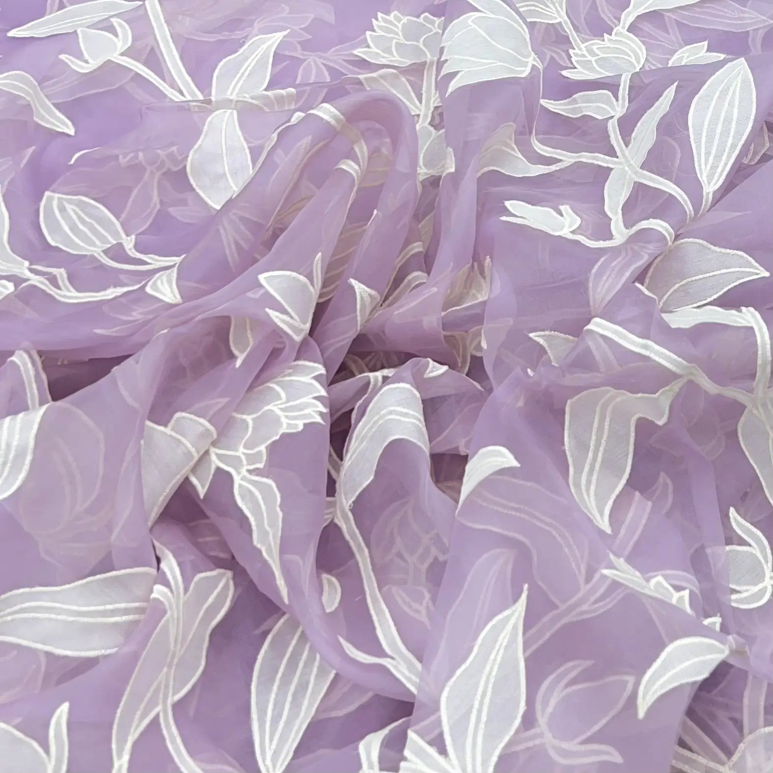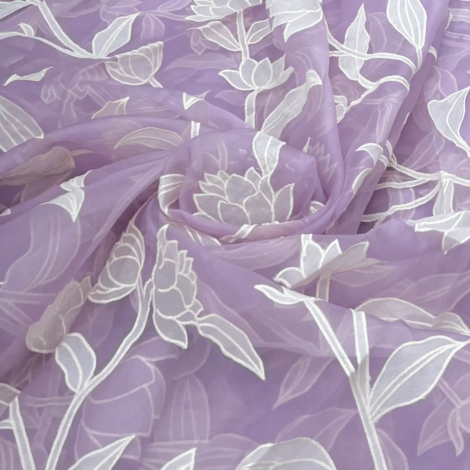 Organza is a lightweight, sheer fabric with a crisp finish, perfect for creating elegant sarees, gowns, and couture designs. Its subtle transparency and fine texture bring a refined, luxurious touch to any ensemble