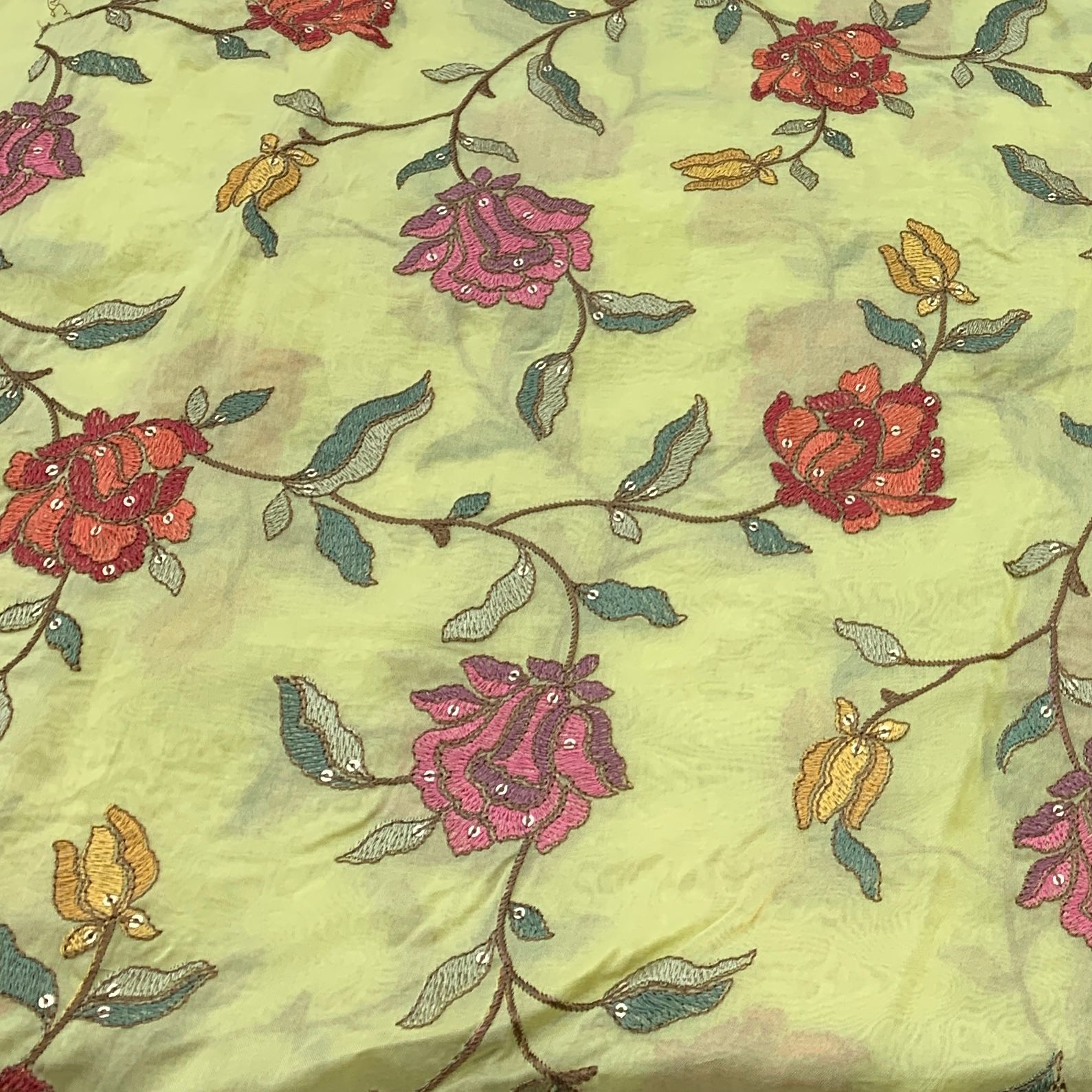 Organza is a lightweight, sheer fabric with a crisp finish, perfect for creating elegant sarees, gowns, and couture designs. Its subtle transparency and fine texture bring a refined, luxurious touch to any ensemble