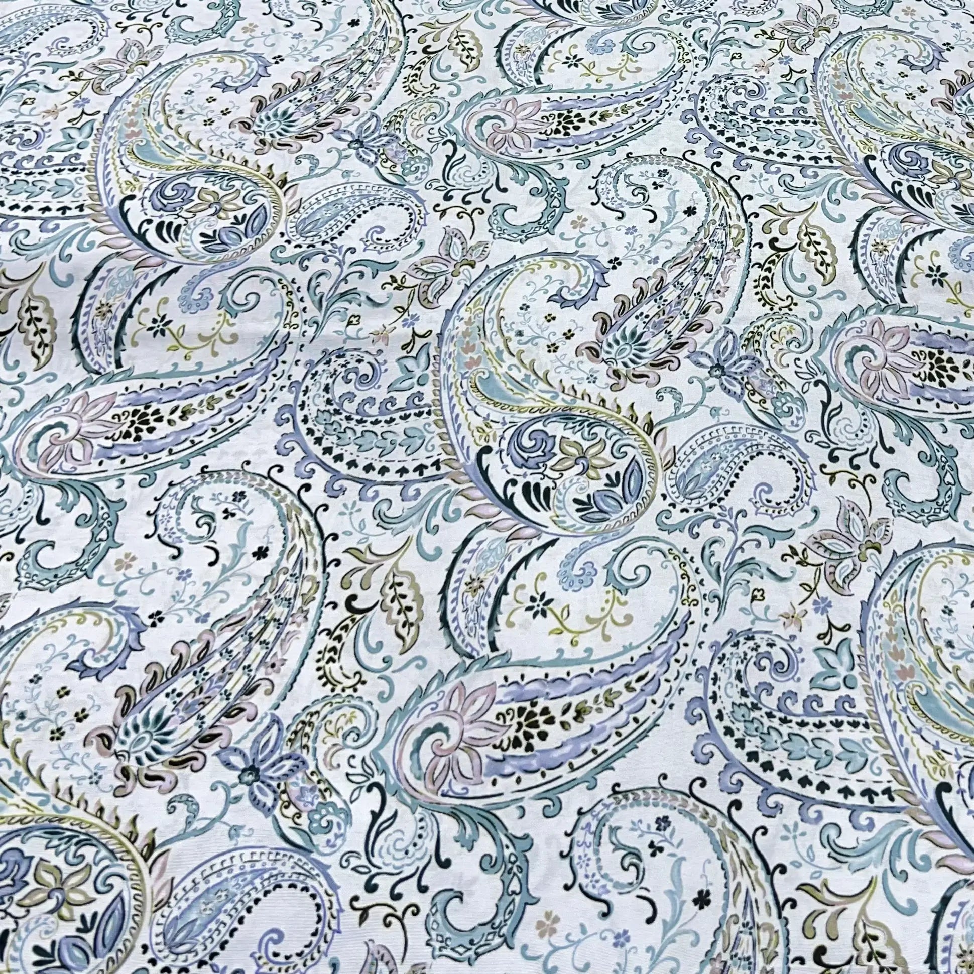 Light Blue Paisley Slub Silk Print