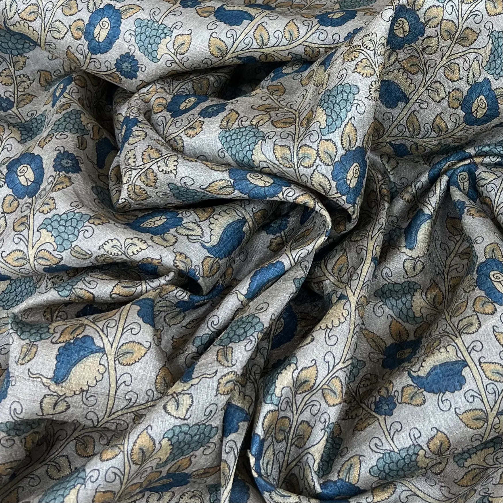 Light Grey Kalamkari Jal Pure Tussar Printed