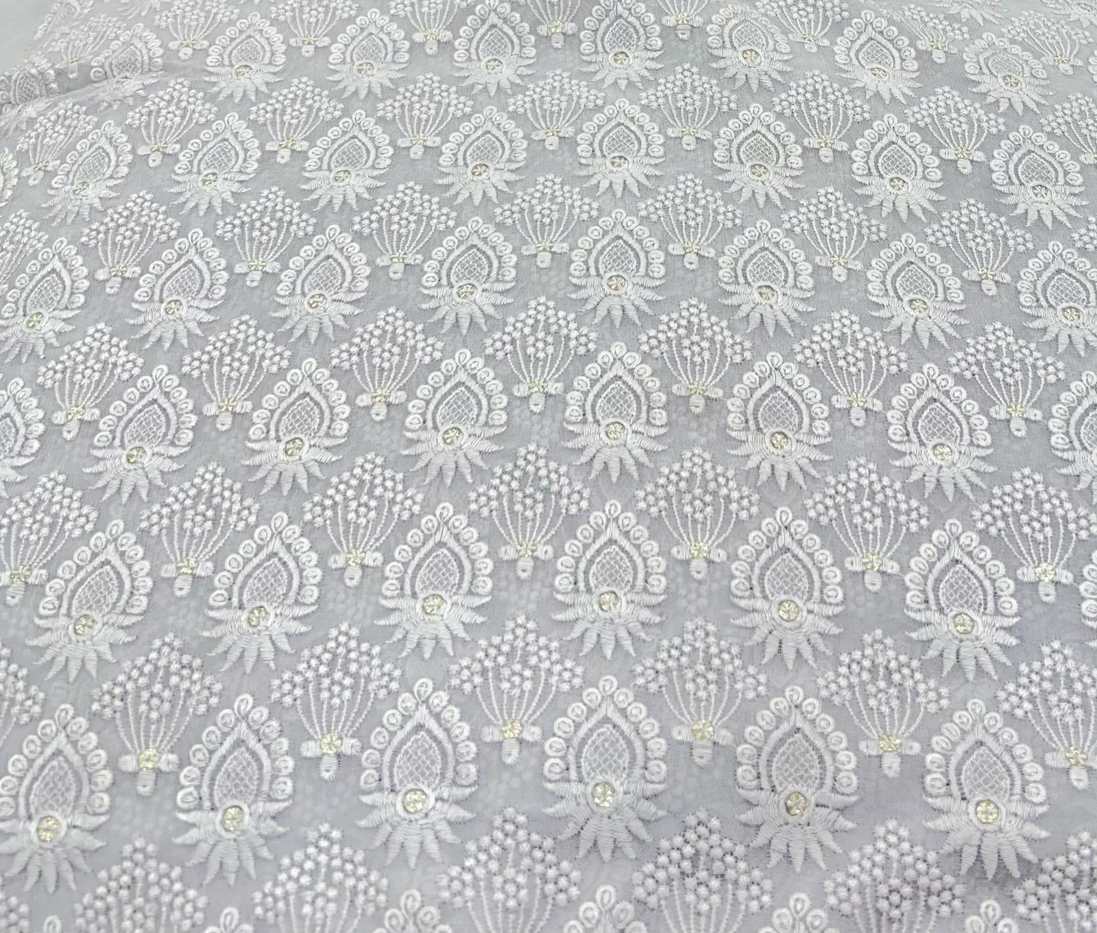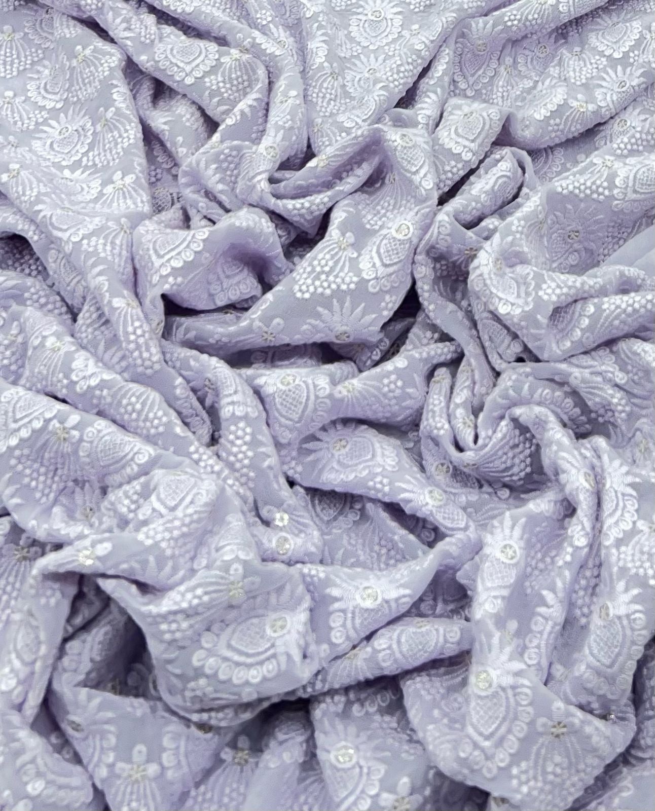 Georgette embroidered fabric is lightweight, flowy, and stylish, perfect for both men's and women's fashion. Ideal for sarees, gowns, lehengas, kurtis, dupattas, sherwanis, and jackets, its soft drape adds elegance, making it a refined choice for weddings, festivals, and special occasions