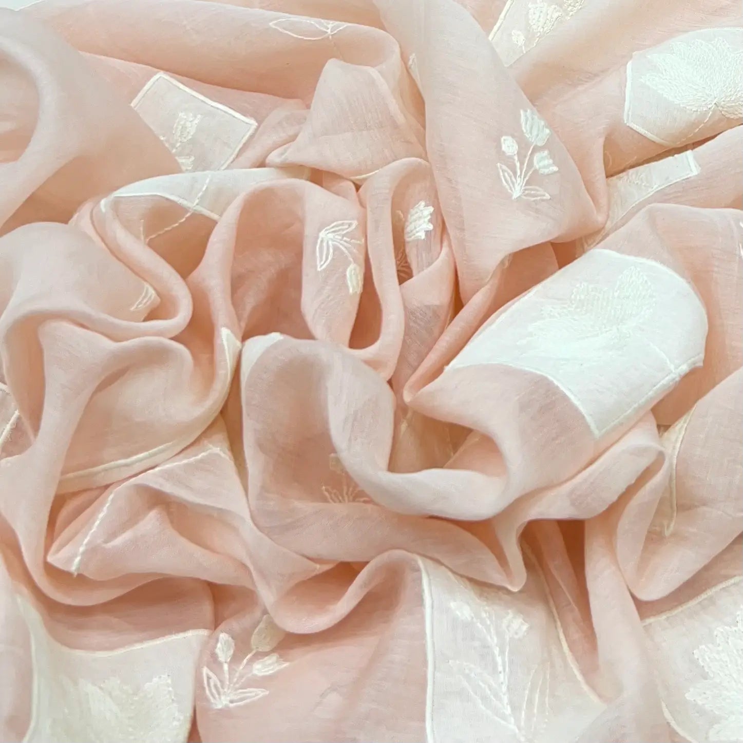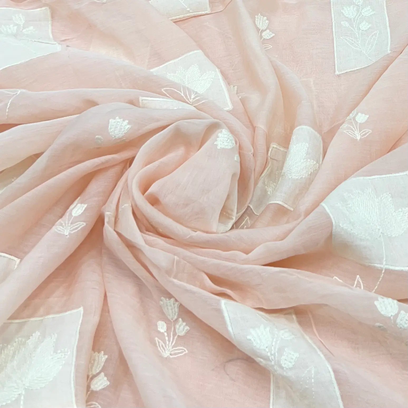 Light Peach Floral Applique Mul Chanderi Embroidery