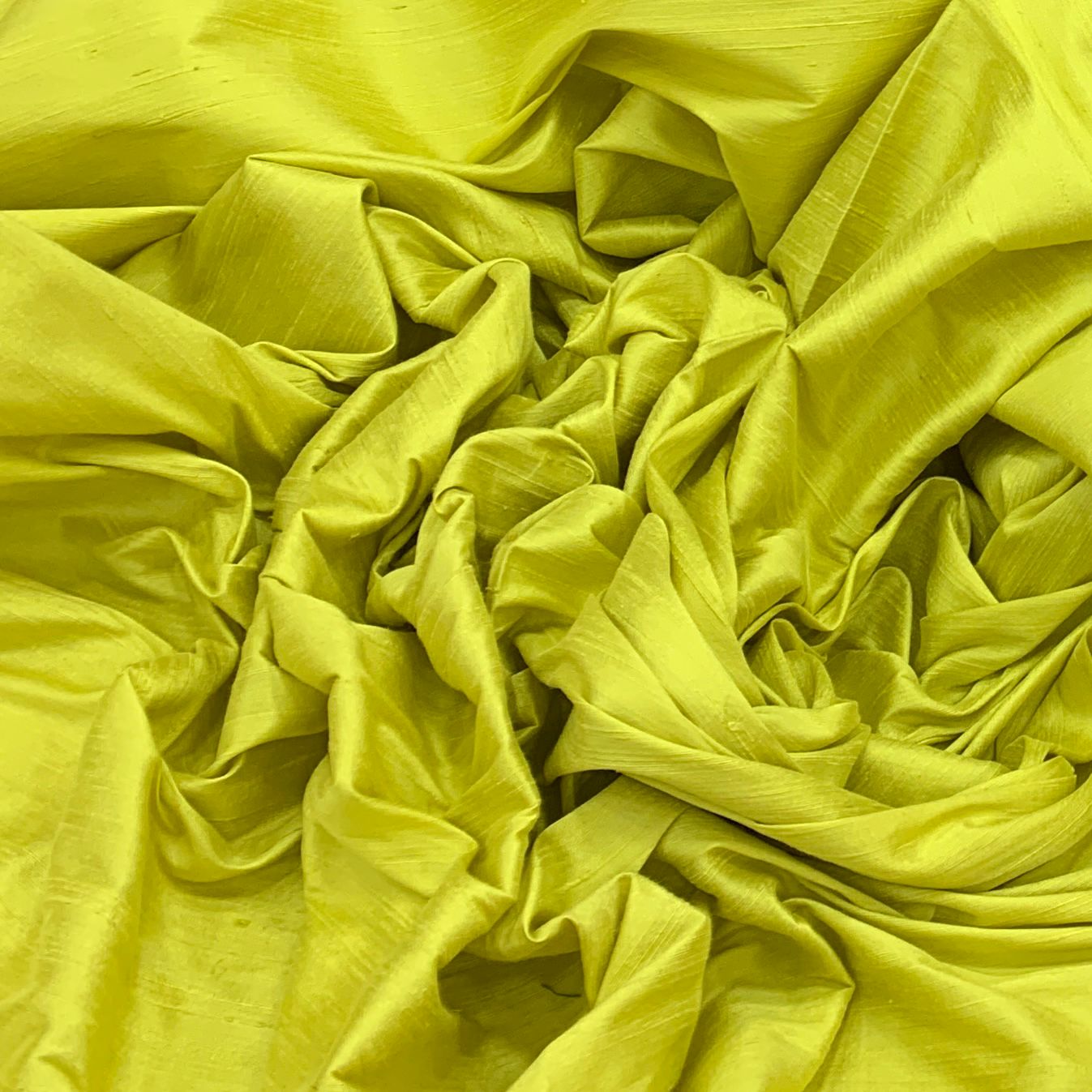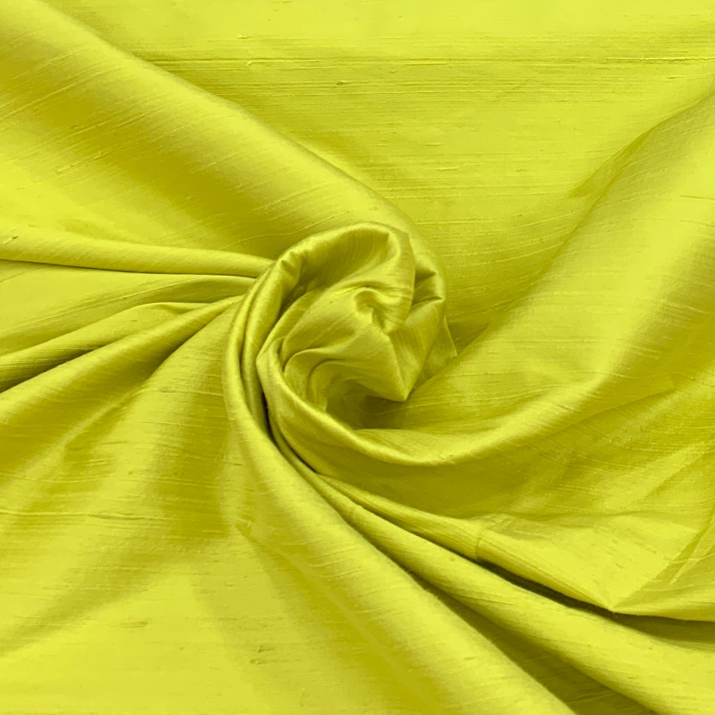 Lime Green Plain Raw Silk Fabric. Continuous filaments of silk, with no twist, which have been reeled from cocoons but are unprocessed and comes with a slub effect. Raw Silk has a nubby feel with a low sheen. It resembles cotton in surface texture and sews easily. When these short fibers are spun into yarns, the resulting yarns have occasional slubs and specks that add to its appeal. Nubs vary between different weaves. Sportier in appearance, Raw Silk has the look of hopsack but is much softer.