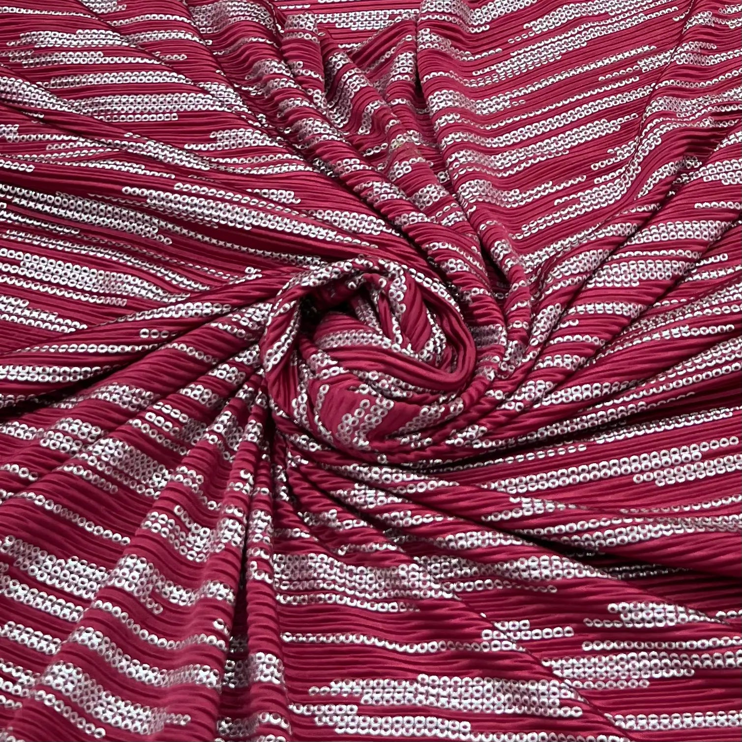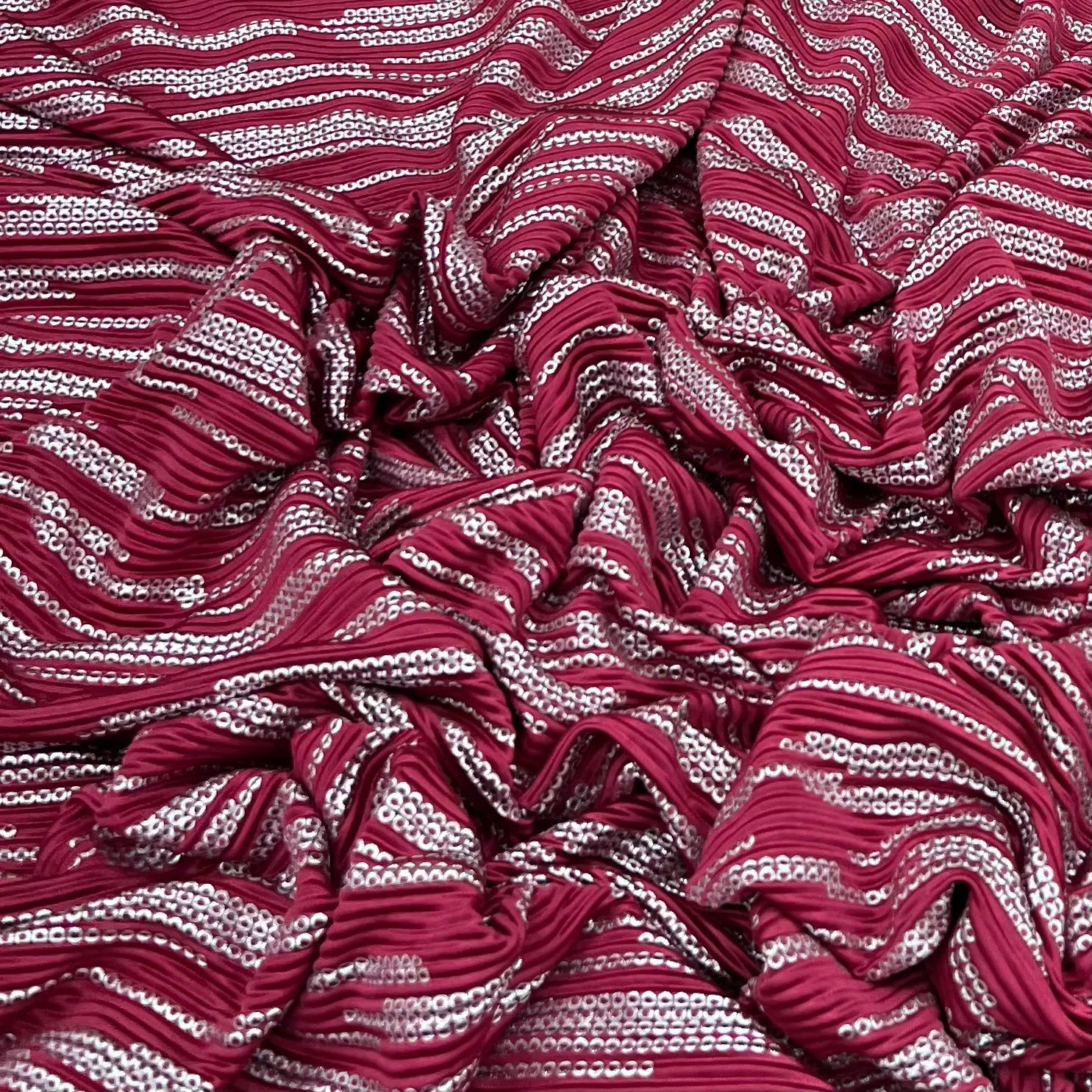 Pleated satin fabric combines a silky sheen with finely pressed folds, creating a luxurious texture that reflects light beautifully. Smooth and fluid, it drapes elegantly, making it ideal for skirts, dresses, blouses, and eveningwear. Composition: 100% polyester fabric