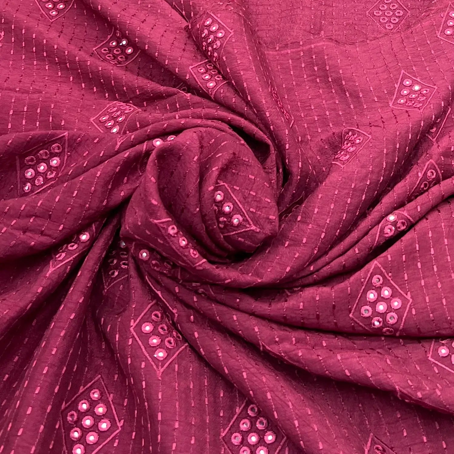 Slub silk fabric offers a luxurious texture with natural, irregular slubs and a subtle sheen. Lightweight yet durable, it’s perfect for men’s and women’s wear, including tailored bandis, jackets, kurtas, lehengas, tops, dresses, blouses and other ensembles