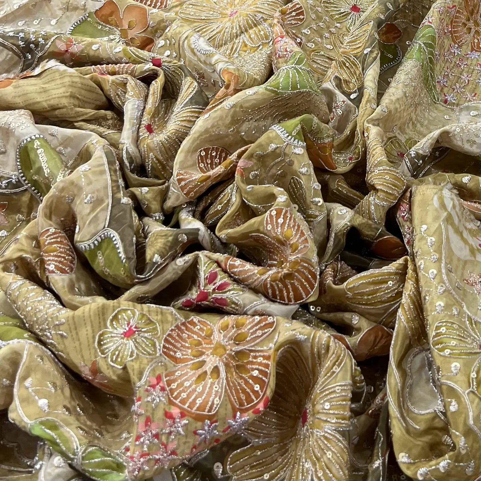 Mehendi Green Floral Printed Sequins Thread Crepe Embroidery