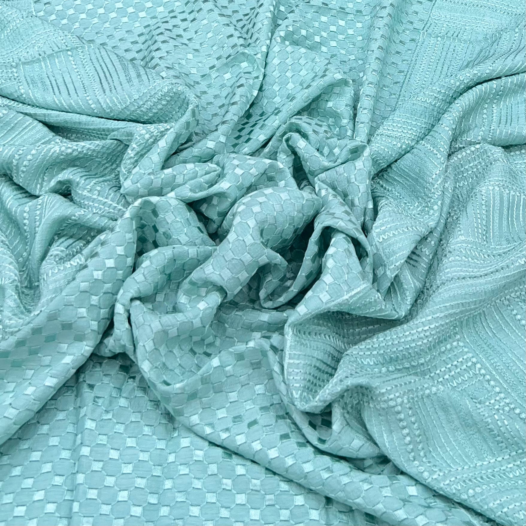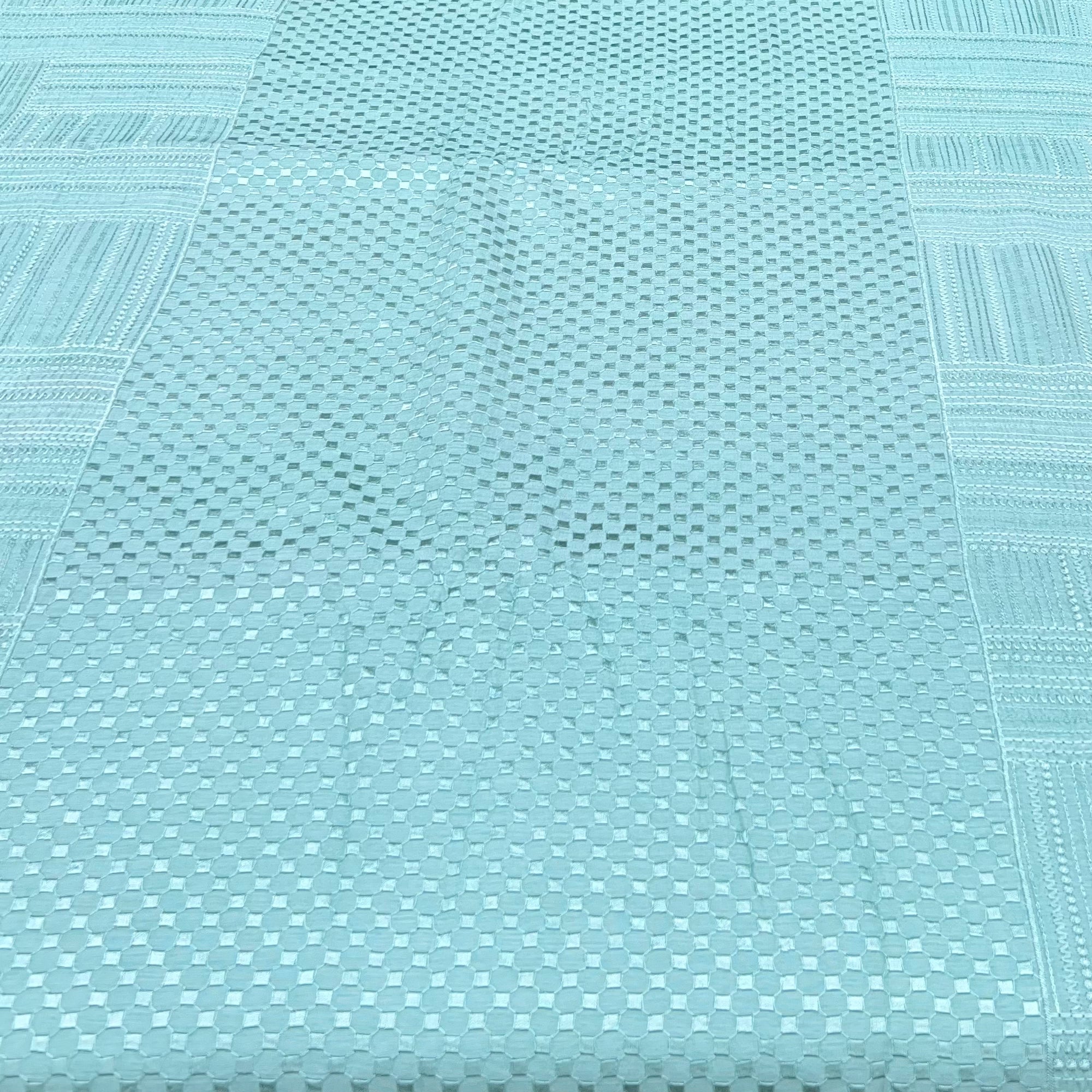 Mint Green Geometric Slub Silk Embroidery