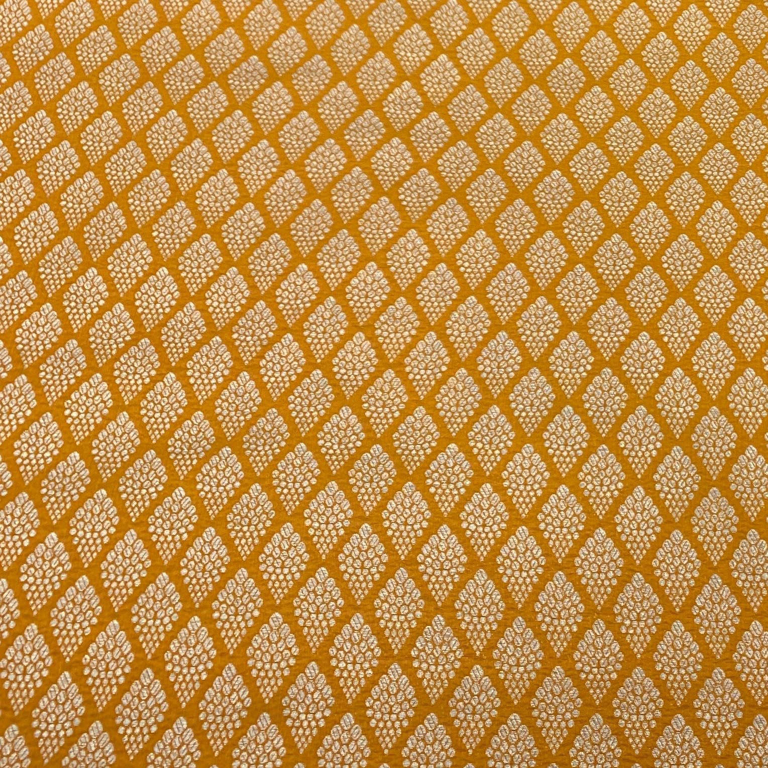 Silk brocade is an opulent fabric crafted with elaborate designs in silk and metallic threads, creating a richly textured surface. Celebrated for its durability and majestic appeal, it is perfect for sarees, lehengas, sherwanis, jackets, and festive attire, bringing a touch of timeless luxury to every creation