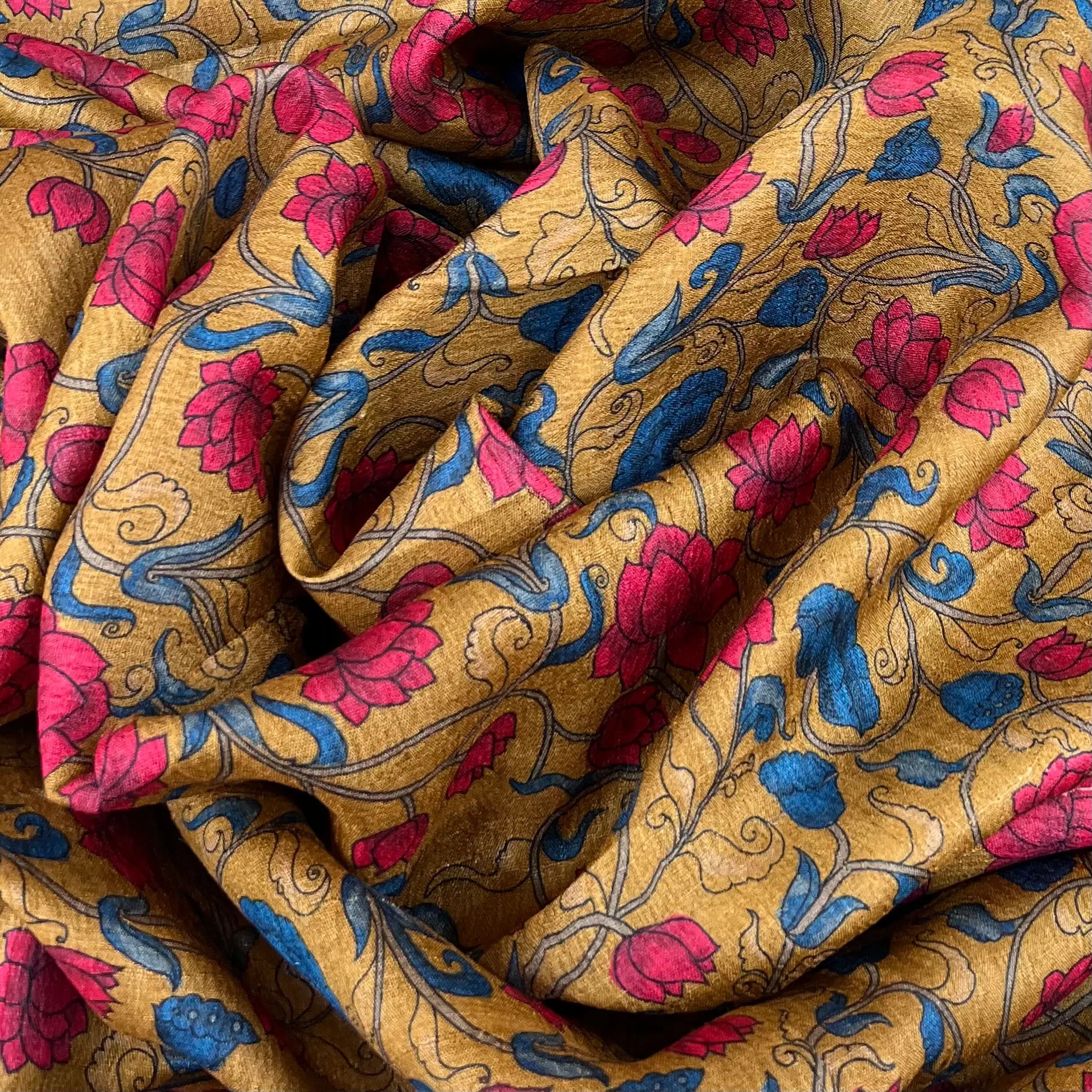 Mustard Yellow Kalamkari Jal Pure Tussar Printed
