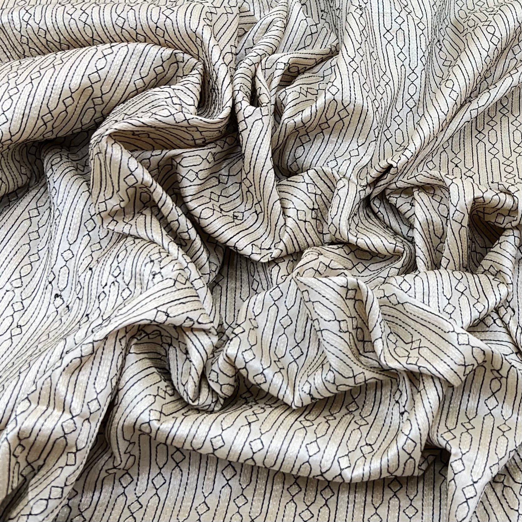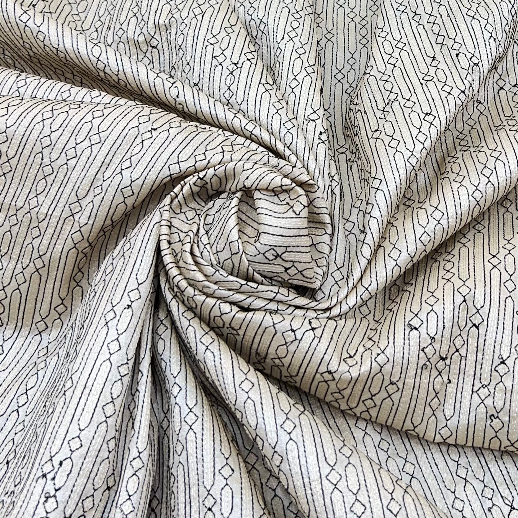 Natural Beige Geometric Overall Thread Pure Tussar Embroidery