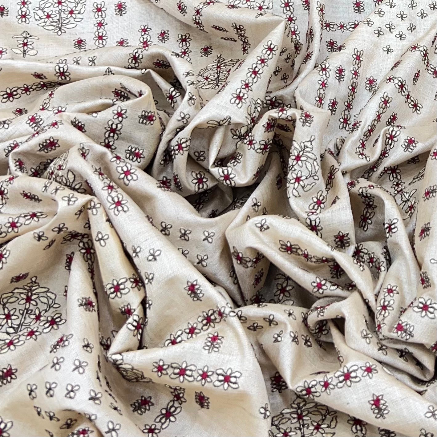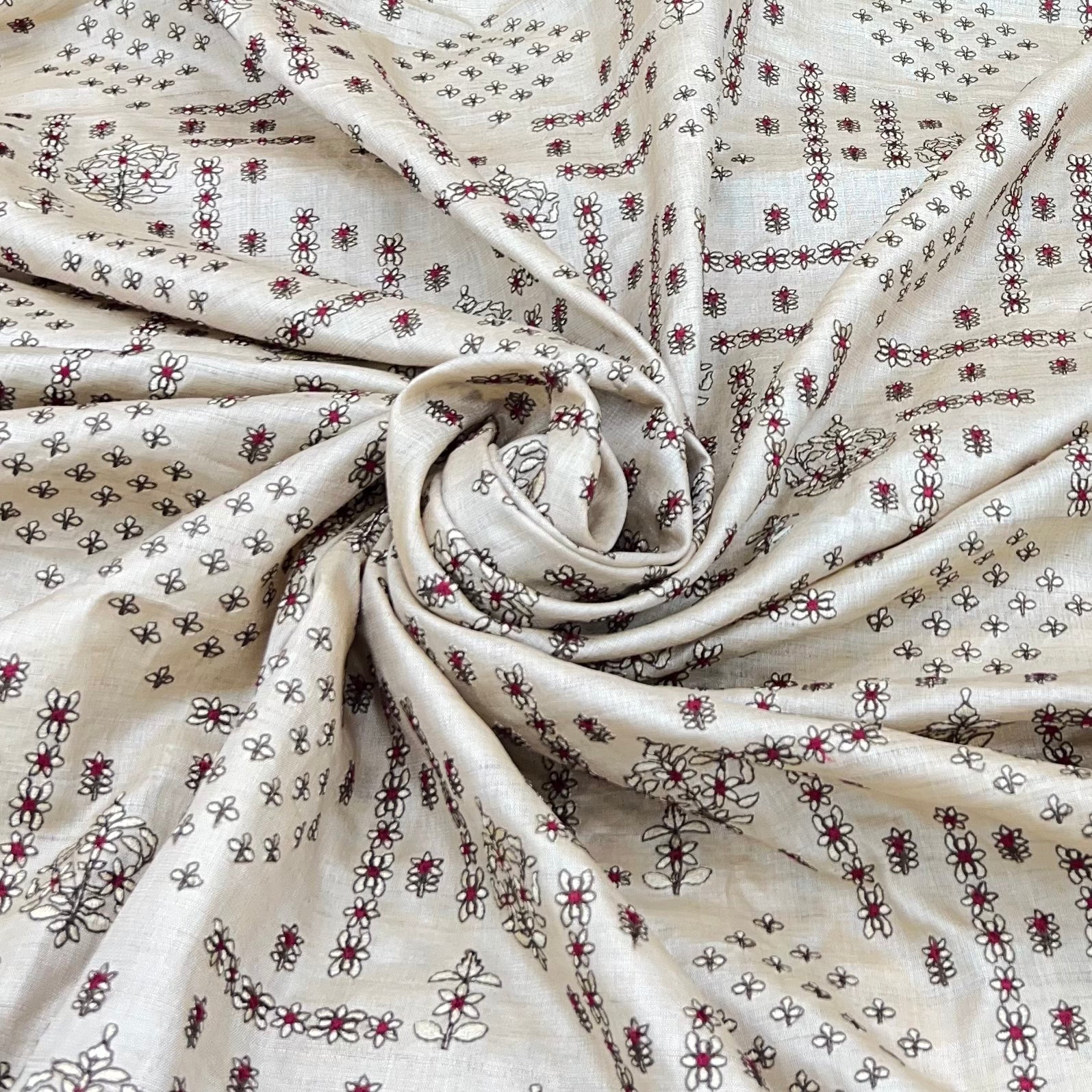 Natural Beige Geometric Thread Pure Tussar Embroidery
