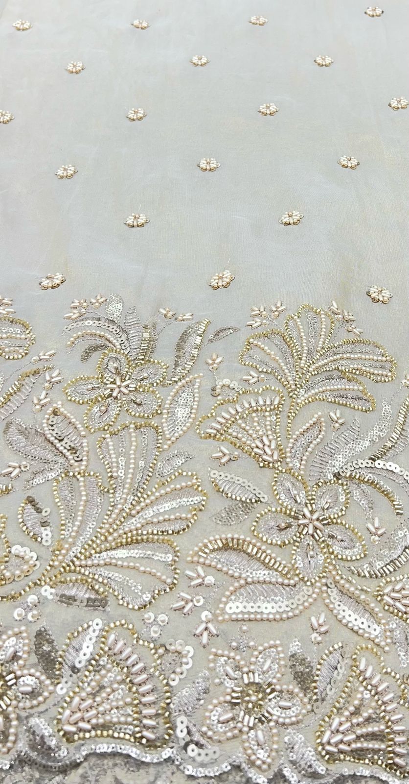 Natural Beige Tissue Cutdana Off White Pearl Embroidery