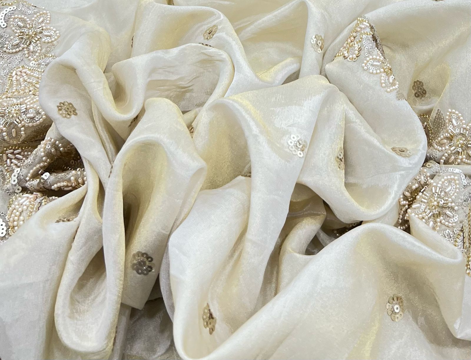 Tissue fabric is lightweight, sheer, and radiant, bringing elegance to any outfit. Ideal for sarees, lehengas, dupattas, and couture wear, its airy texture and graceful drape add a touch of luxury. Perfect for statement blouses or gowns, it ensures a sophisticated, glamorous look for any special occasion