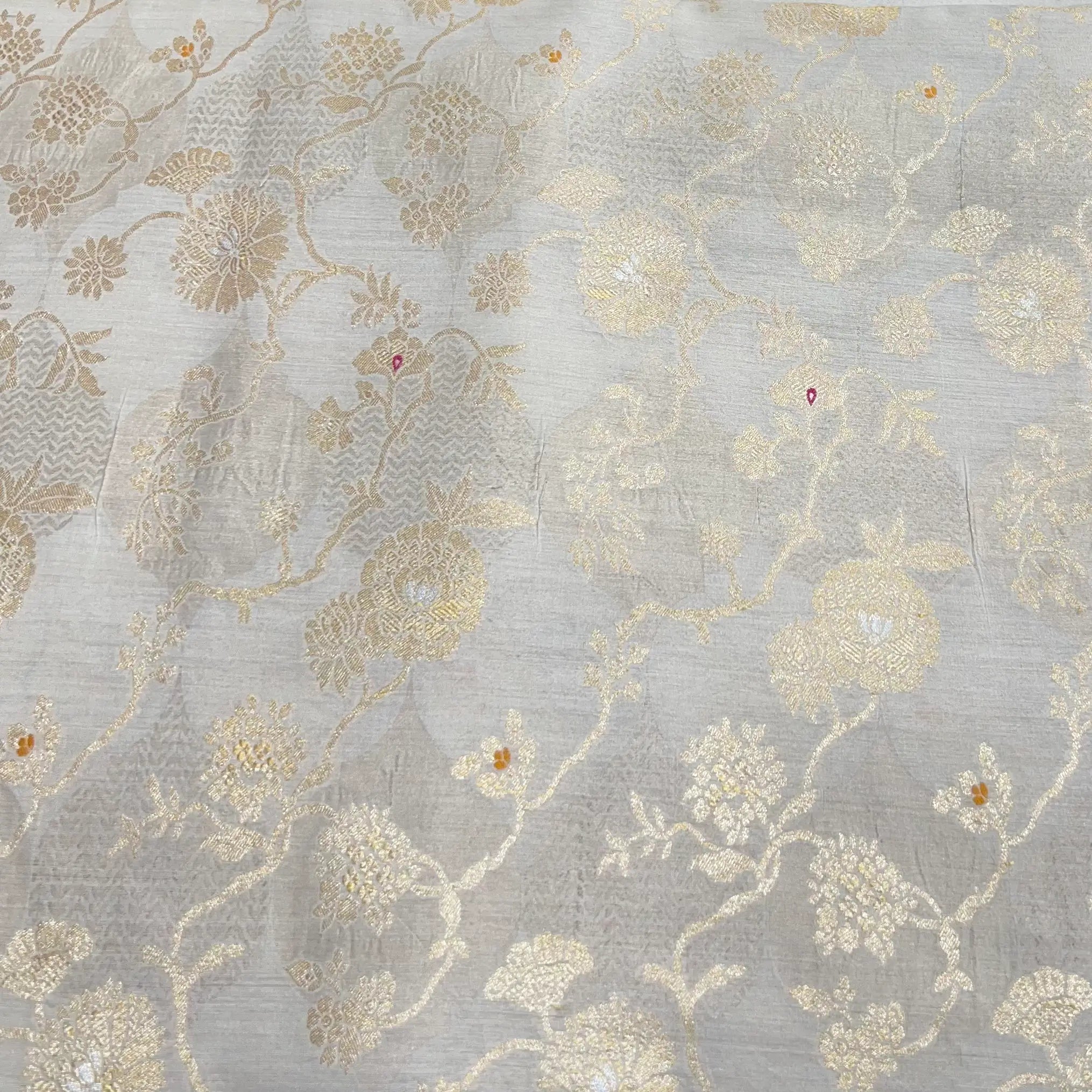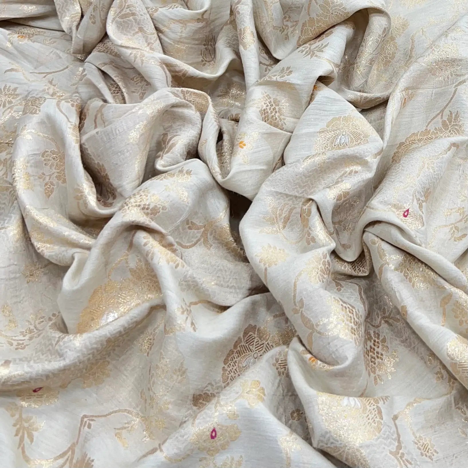 Silk zari brocade fabric showcases rich silk shine paired with intricate metallic zari patterns. Luxurious, ornate, and beautifully textured, it’s perfect for crafting lehengas, blouses, sarees, festive wear, kurtas and statement ethnic pieces that need a regal, opulent finish