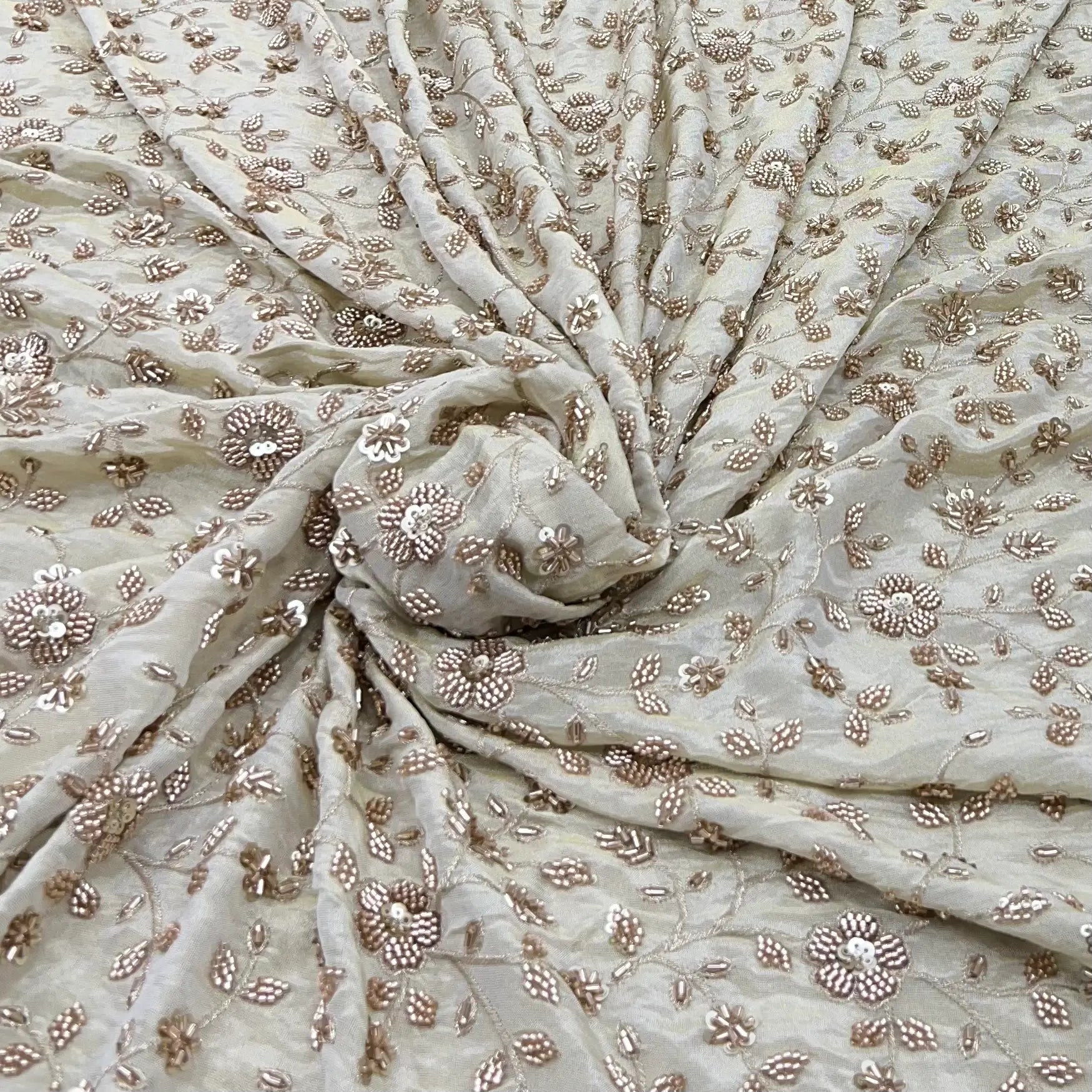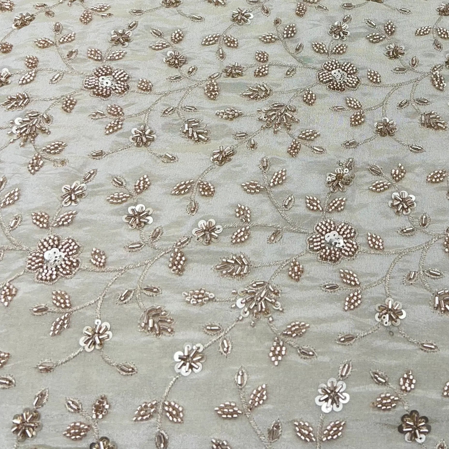 Natural Gold Floral Jal Tissue Cut Dana Embroidery