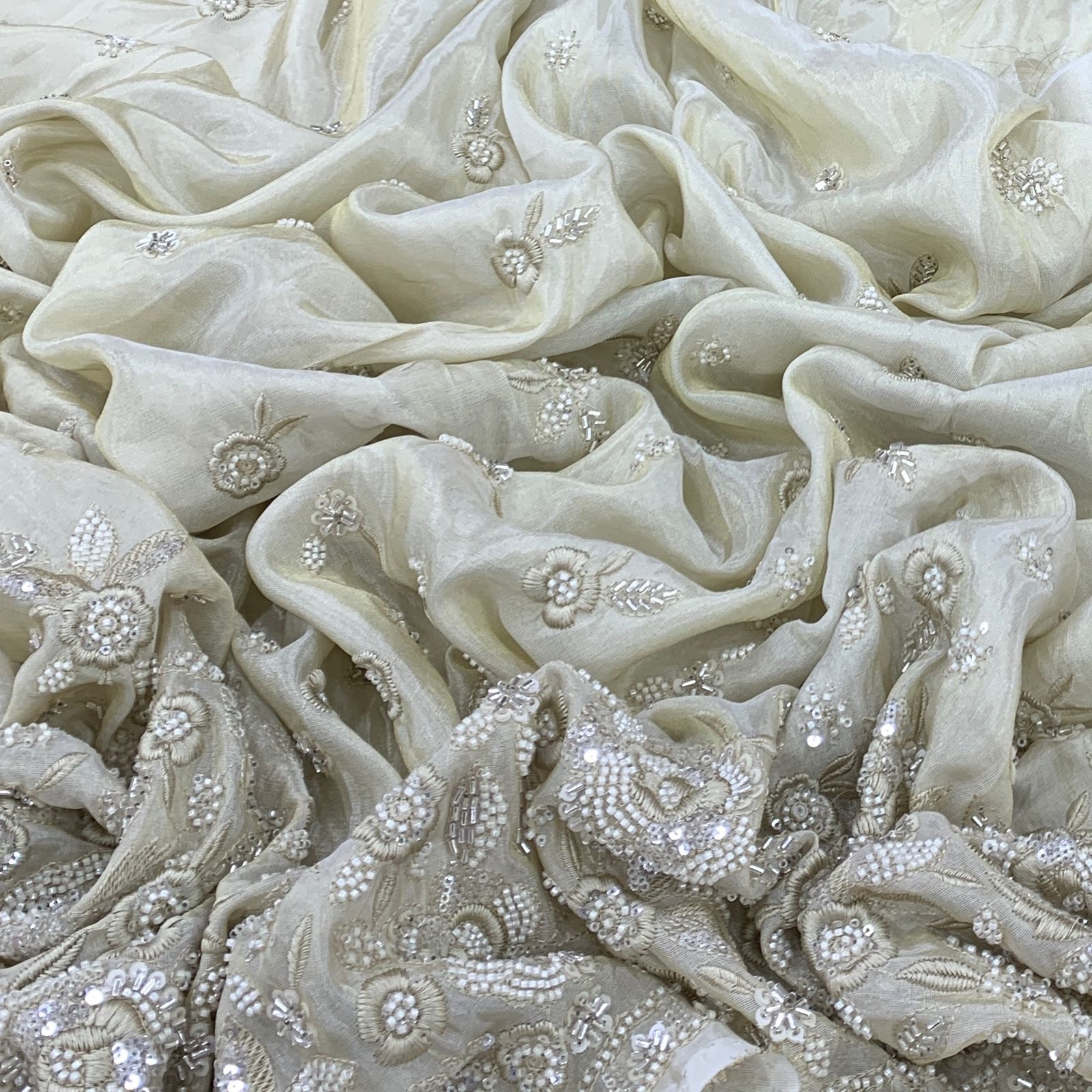 Tissue fabric is lightweight, sheer, and radiant, bringing elegance to any outfit. Ideal for sarees, lehengas, dupattas, and couture wear, its airy texture and graceful drape add a touch of luxury. Perfect for statement blouses or gowns, it ensures a sophisticated, glamorous look for any special occasion