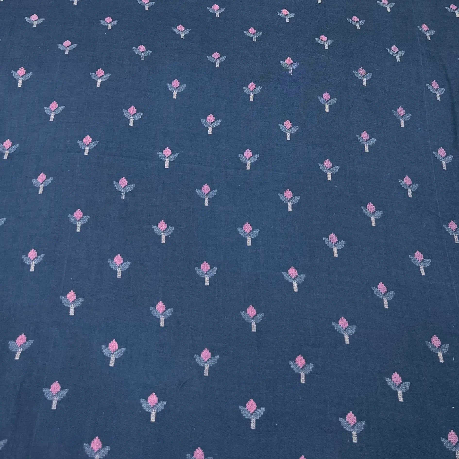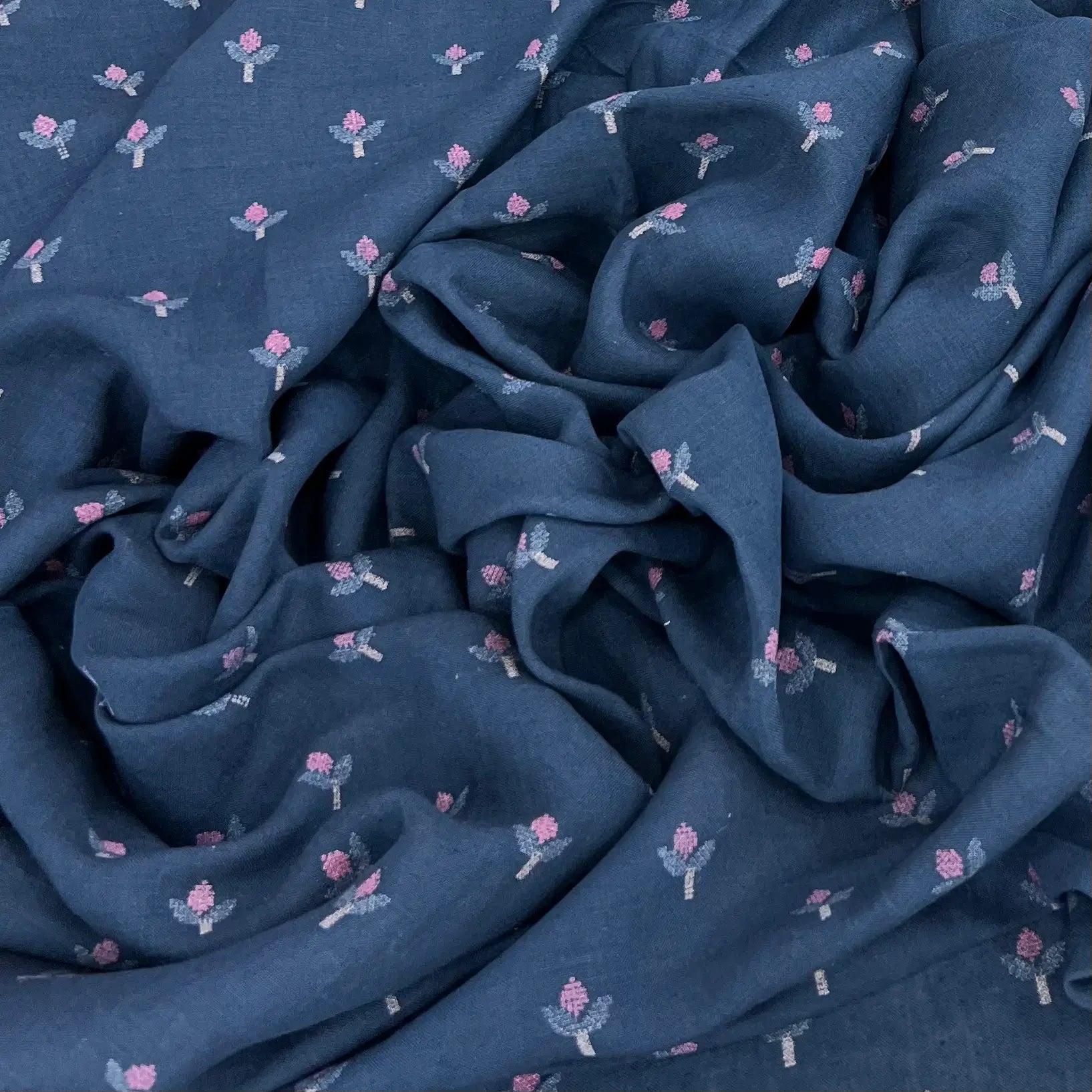 Navy Blue Floral Pure Linen Printed